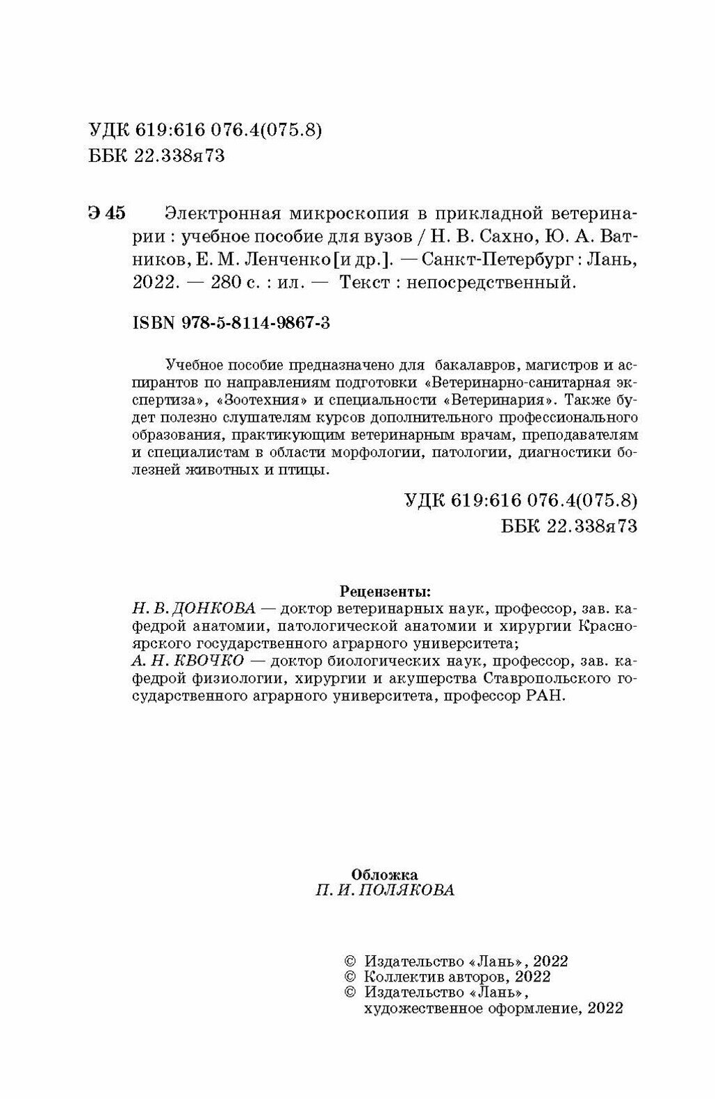 Электронная микроскопия в прикладной ветеринарии. Учебное пособие для вузов (Сахно Николай Владимирович, Ватников Юрий Анатольевич, Ленченко Екатерина Михайловна); Лань, 2022