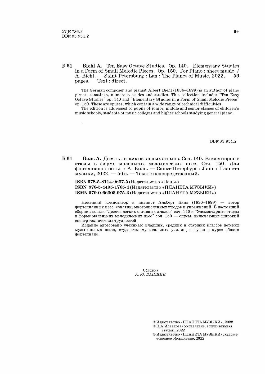 Десять легких октавных этюдов соч. 140. Элементарные этюды в форме маленьких мелодических пьес (Альберт Биль); Издательство «Планета музыки», 2022