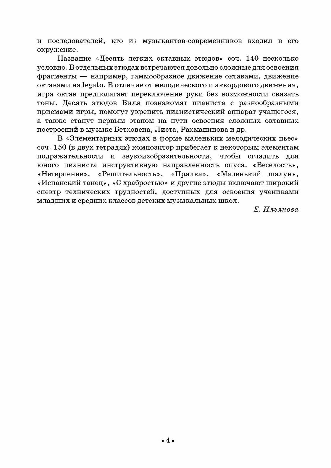Немецкий композитор и пианист Альберт Биль (1836—1899) — автор фортепианных пьес, сонатин, многочисленных этюдов и упражнений. В настоящий сборник вошли "Десять легких октавных этюдов" соч. 140 и "Элементарные этюды в форме маленьких мелодических пьес" соч. 150 — опусы, включающие широкий спектр технических трудностей.