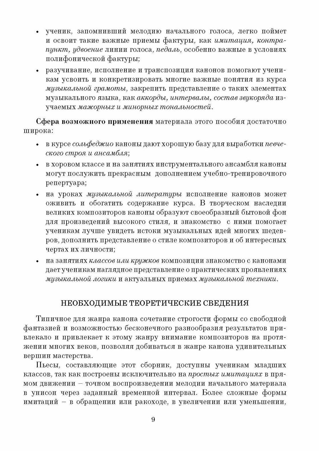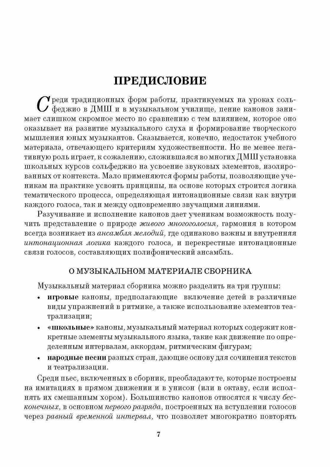 Настоящий сборник содержит 220 примеров, разделённых на две части. 100 канонов первой части предназначены для использования в качестве учебной литературы на уроках сольфеджио. Эта часть построена с учётом постепенного усложнения музыкального материала, и может применяться в группах студентов младших курсов колледжа. 120 канонов второй части распределены по нескольким различным темам: классические, студенческие и сложные каноны. Материал второй части сборника может быть использован в качестве иллюстраций в курсе музыкальной литературы в колледже; для изучения и освоения техники канона в курсах полифонии в среднем музыкального образования; в качестве учебного репертуара хоровых классов в средних специальных учебных заведениях.