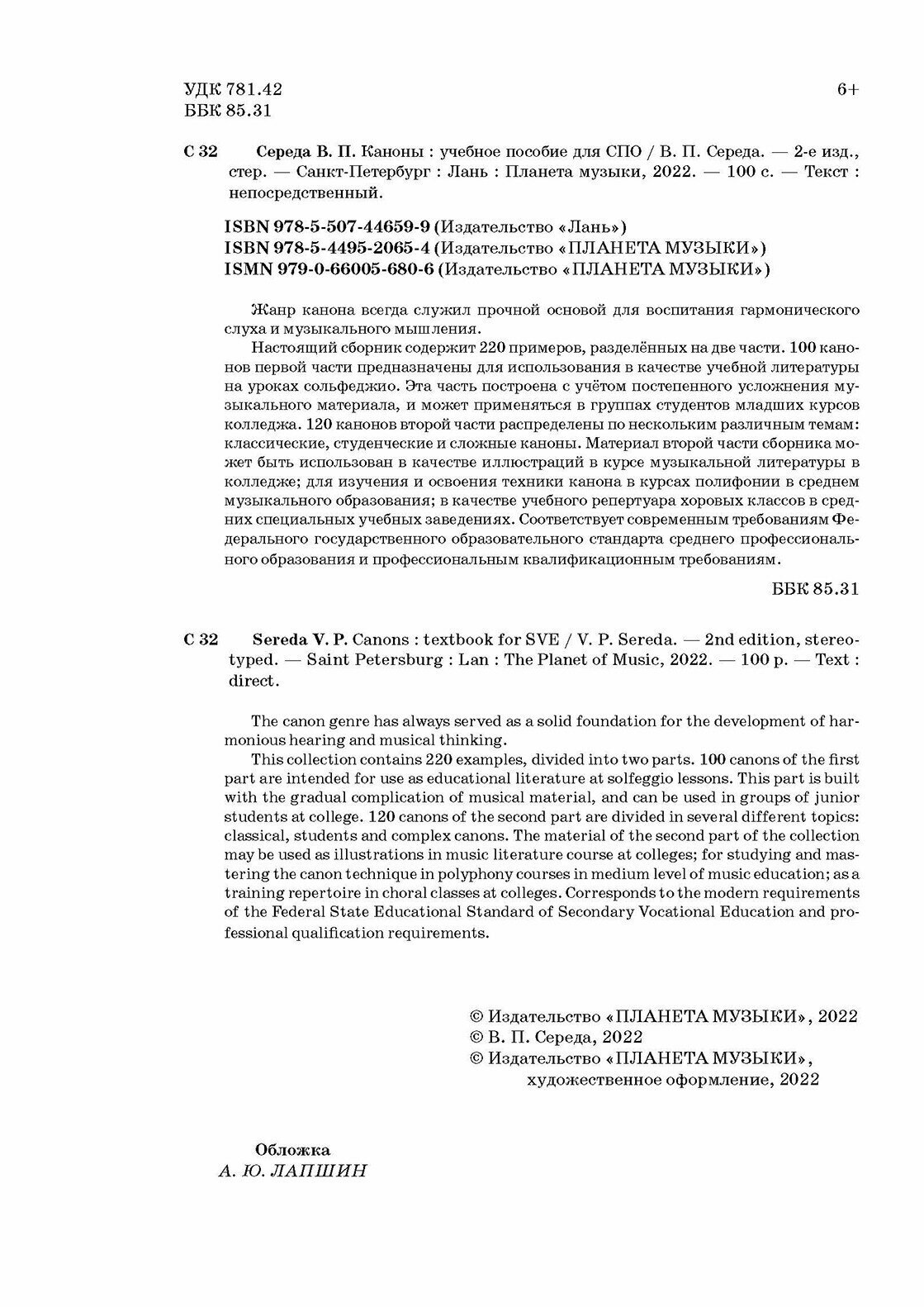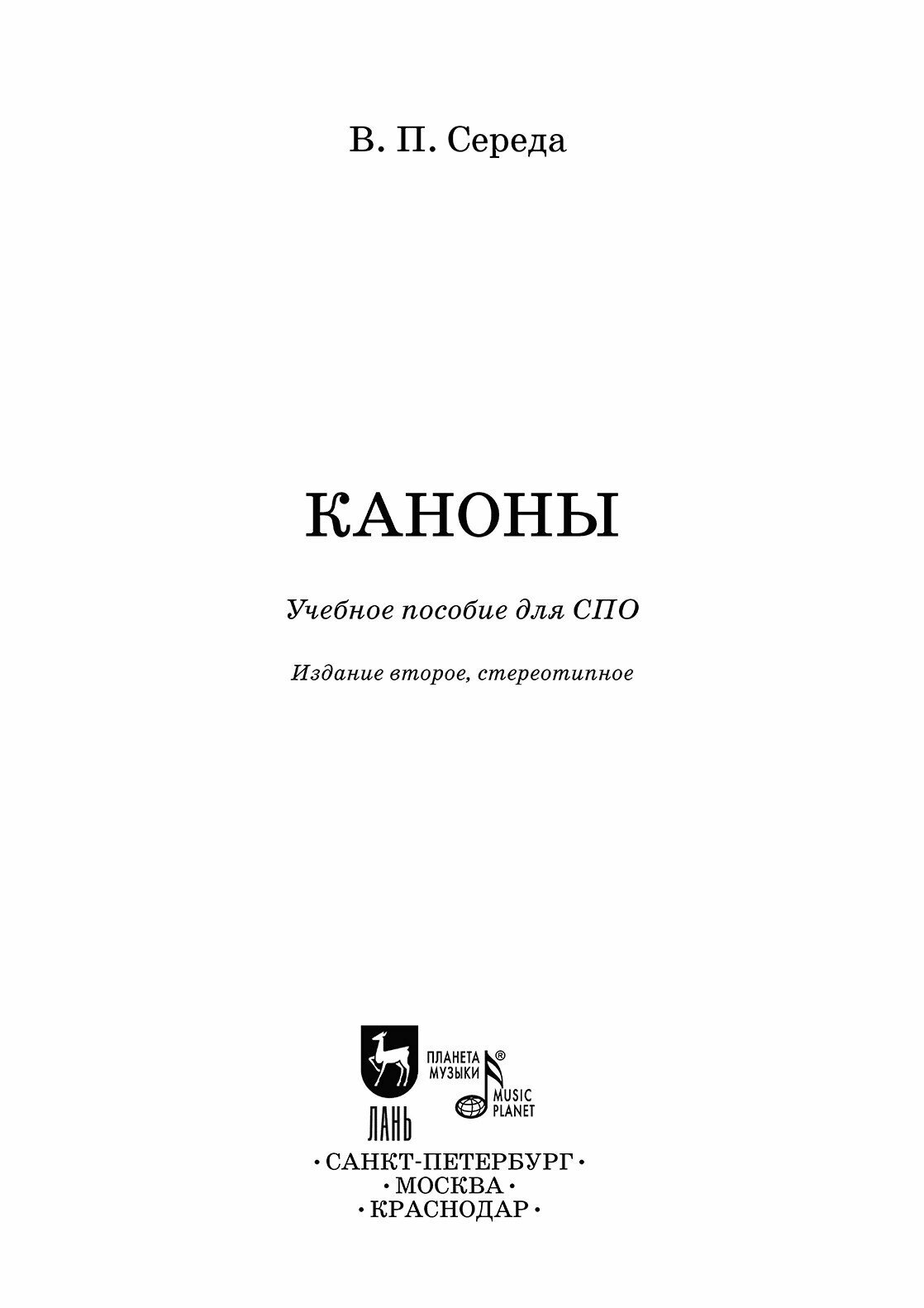 Каноны. Учебное пособие для СПО (Середа Валентин Павлович); Планета Музыки, 2022