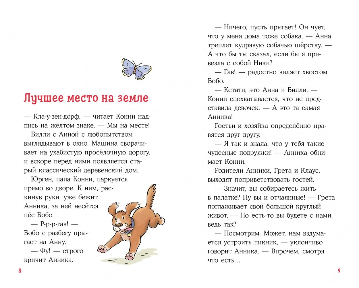 Каникулы! Что может быть лучше? Только каникулы в палатке в деревне!Конни и её школьные подруги Анна и Билли отправляются в гости к Аннике, которая живёт на большой ферме: у них есть коровы, козы, овцы и целая конюшня. Девочек ждут весёлые деньки, если только соседские мальчишки всё не испортят.История про каникулы, противостояние мальчишек и девчонок и победу дружбы читается легко и с удовольствием. Родители вспомнят книжки времён своего детства, а дети узнают в приключениях героев знакомые им ситуации.