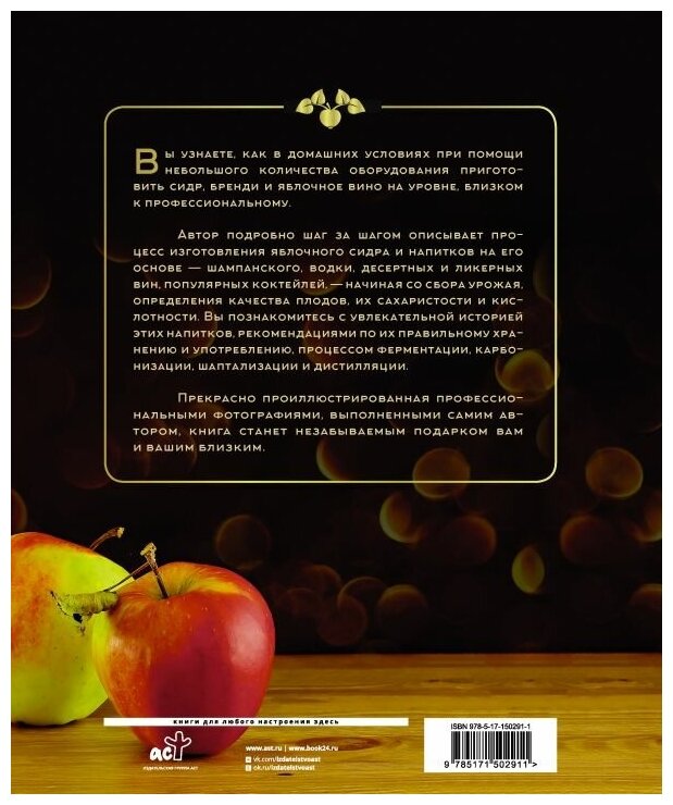 Автор подробно шаг за шагом описывает процесс изготовления яблочного сидра и напитков на его основе — шампанского, водки, десертных и ликерных вин, популярных коктейлей, — начиная со сбора урожая, определения качества плодов, их сахаристости и кислотности. Вы познакомитесь с увлекательной историей этих напитков, рекомендациями по их правильному хранению и употреблению, процессом ферментации, карбонизации, шаптализации и дистилляции.