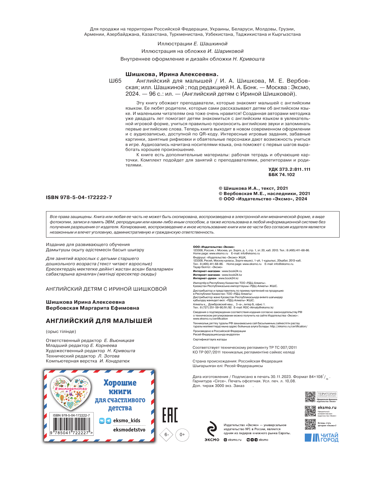 Английский для малышей. Учебник + аудиозапись по QR-коду (Шишкова Ирина Алексеевна, Вербовская Маргарита Ефимовна); ООО "Издательство "Эксмо", 2022