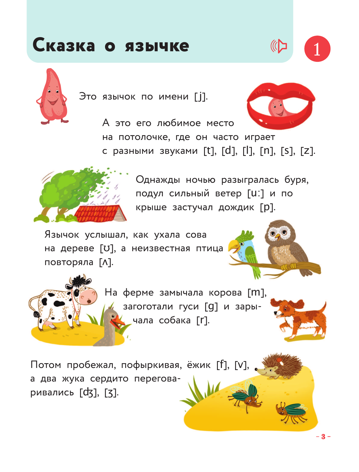 Эту книгу знают и любят все, кто занимался с детьми английским. Уже 20 лет она остается бестселлером среди детских пособий по английскому. Ее авторам удалось невозможное: сделать рассказ об английских звуков действительно захватывающим, превратить фонетику в веселую игру, а знакомство с английскими словами и фразами – в увлекательные задания. В этой книге нет сложных объяснений – только понятные детям слова, стильные современные иллюстрации, веселые задания! Заниматься с ребенком сможет любой взрослый, знакомый с основами английского языка. Не уверены в своем произношении? Звукозапись начитана носителями языка и доступна по QR-коду. У вас будет отличный образец для постановки произношения.