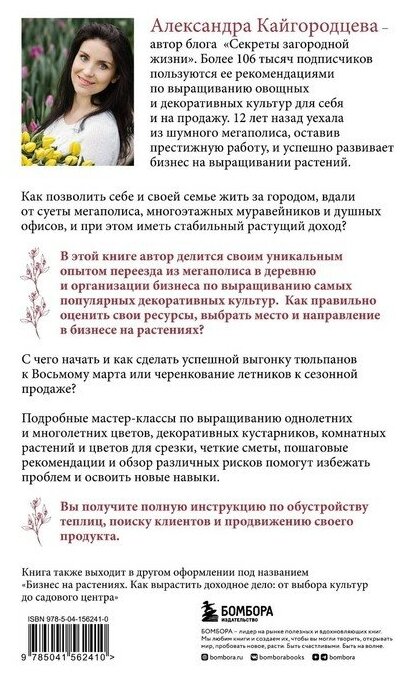 Как правильно оценить свои ресурсы, выбрать место и направление в бизнесе на растениях? С чего начать и как сделать успешной выгонку тюльпанов к Восьмому марта или черенкование летников к сезонной продаже? Подробные мастер-классы по выращиванию однолетних и многолетних цветов, декоративных кустарников, комнатных растений и цветов для срезки, четкие сметы, пошаговые рекомендации и обзор различных рисков помогут избежать проблем и освоить новые навыки.