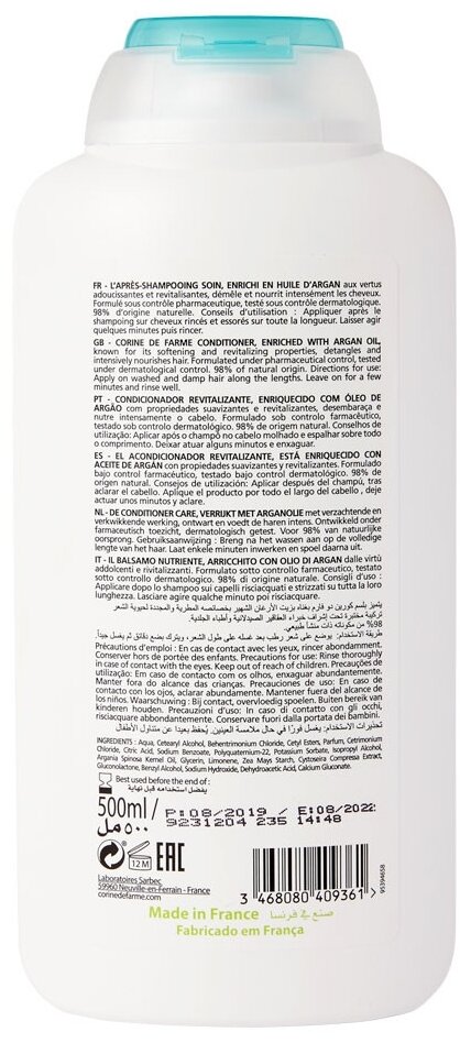 Сервис сравнения цен СкидкаГИД предлагает сравнить цены на товар «Бальзам-ополаскиватель для волос Corine de Farme с Аргановым Маслом 500мл»