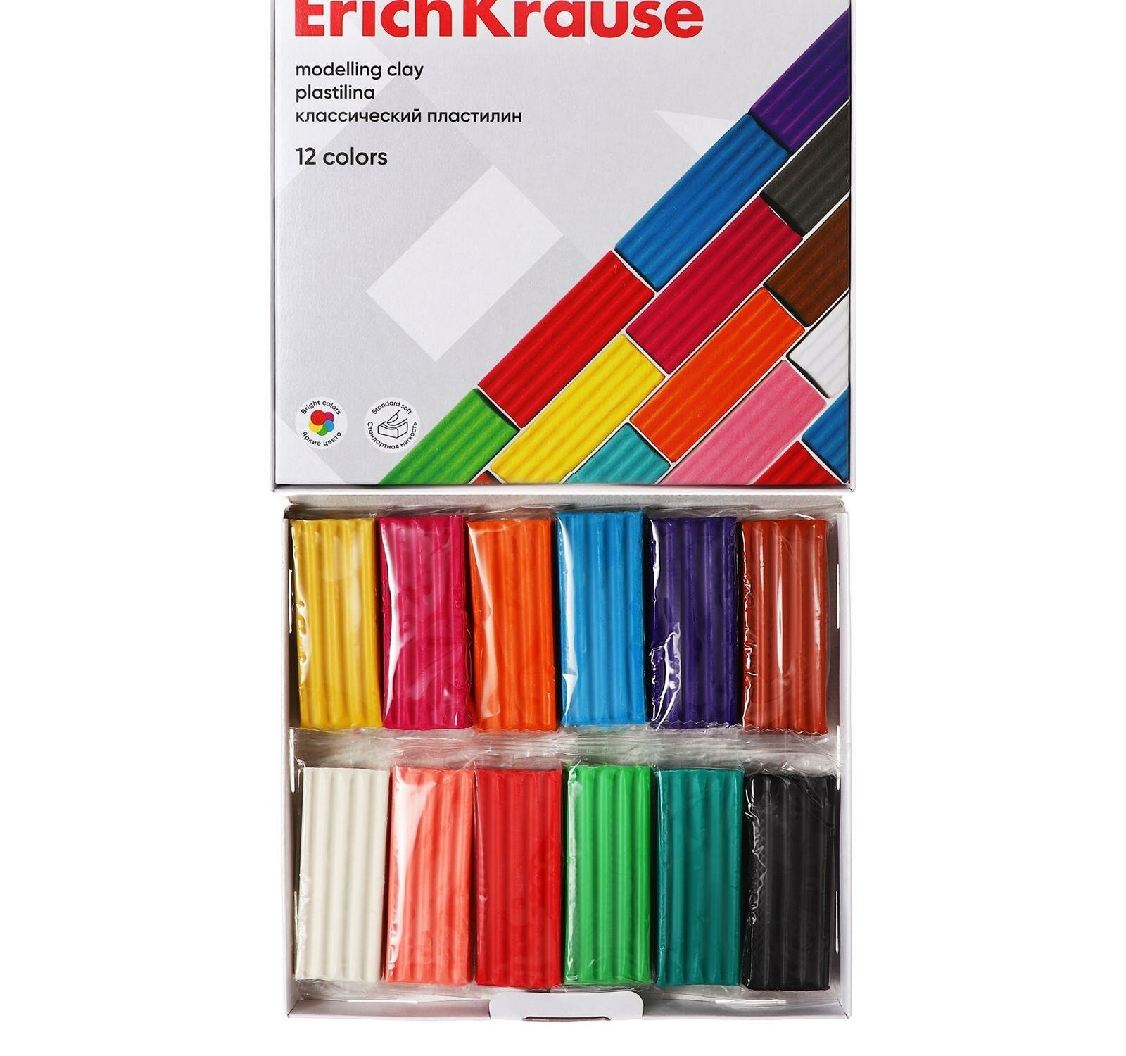 Классический пластилин ErichKrause® Basic стандартной мягкости создан для решения широкого круга творческих задач и для развития мелкой моторики. Пластилин отлично сохраняет свою форму и не застывает на воздухе, а также не прилипает к рукам и не пачкает одежду. Улучшенная цветовая палитра содержит яркие насыщенные цвета, которые отлично смешиваются между собой, создавая новые оттенки. Удобная внутренняя пластиковая подложка (коррекс) более практична, на ней, в отличие от картона, не остаётся масляных пятен. Каждый брусок имеет индивидуальную упаковку «flow-pack», которая надежно сохраняет товарный вид и пластичные свойства продукта.