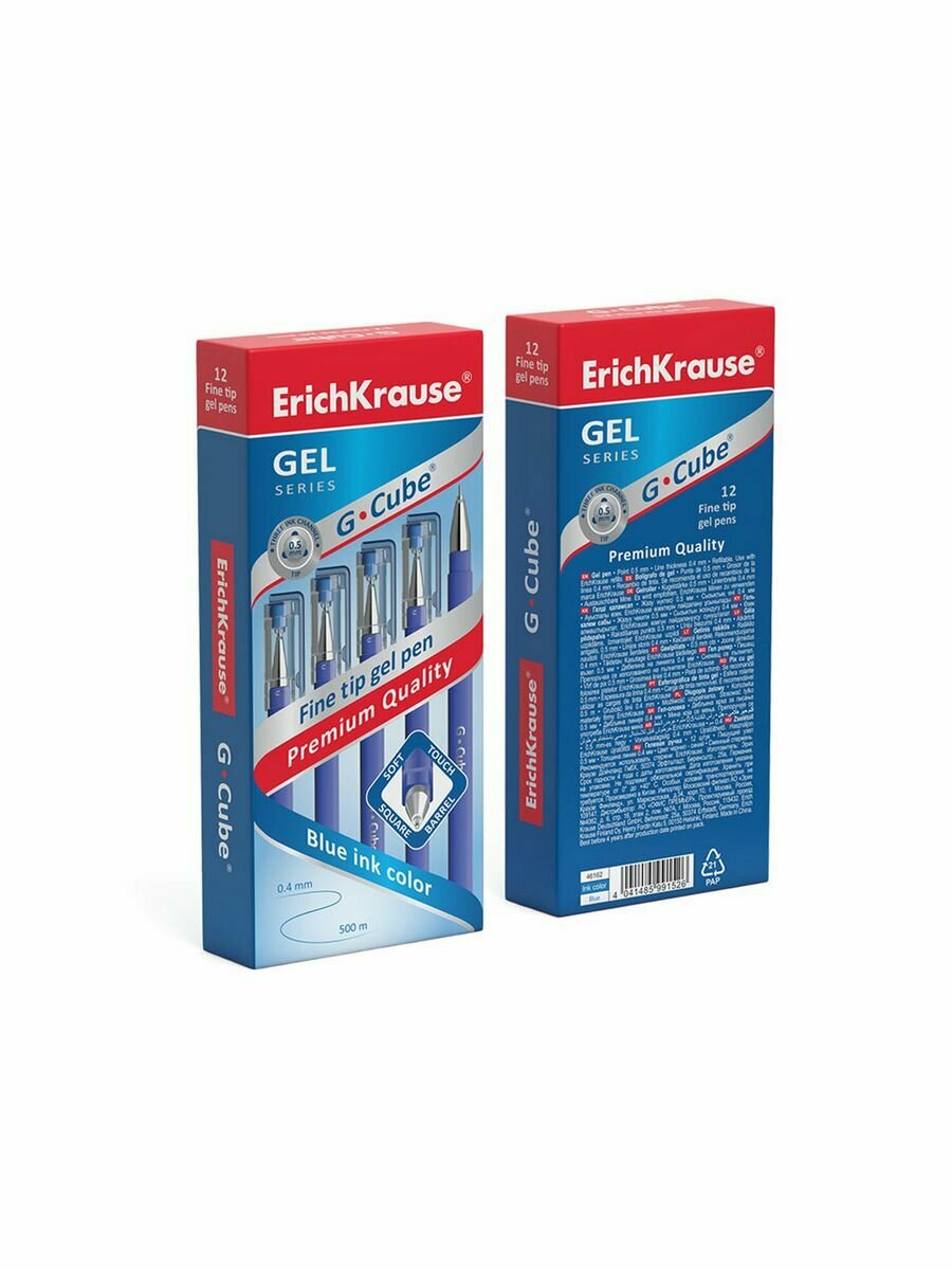 Гелевая ручка ERICH KRAUSE "G-cube" с металлизированным наконечником, утонченным игольчатым типом пишущего узла Fine tip и заменяемым стержнем.