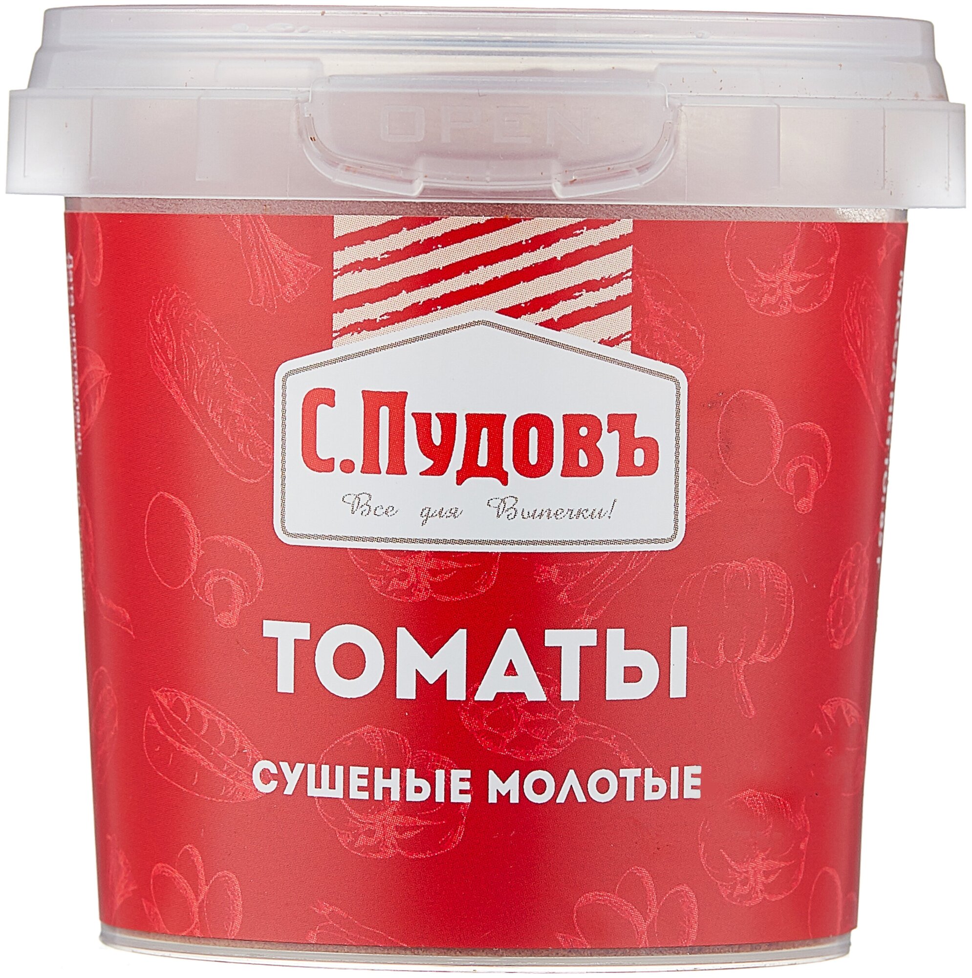 Томаты сушеные молотые «С. Пудовъ» - популярный ингредиент, который используется и как приправа, и как вкусная добавка.Сушеные томаты имеют яркий аромат, превосходящий даже некоторые сорта свежих томатов и томатной пасты. Кроме этого, сушеные томаты удобны в использовании: они могут хранится долго без потери качеств на обычной кухонной полке при комнатной температуре.Использовать сушеные молотые томаты можно практически в любых блюдах. Добавляйте их в тесто для хлеба, пирогов, фокаччо, чиабатту, несладкие начинки и начинку для пиццы. Они подходят для первых и вторых блюд, соусов и маринадов.Томаты сушеные молотые «С. Пудовъ» - 100% натуральный и качественный продукт. С ними всё будет вкусно!Состав: томатный порошок. Может содержать следы глютена, сои, яиц, молока, орехов, арахиса, кунжута, сельдерея, горчицы.Пищевая ценность 100 г продукта (средние значения): белки – 13,0 г, жиры – 0,4 г, углеводы – 73,0 г.Энергетическая ценность/калорийность: 1460 кДж/350 ккал.Срок годности: 24 месяца, при температуре не выше +20°С и относительной влажности воздуха не более 75%.