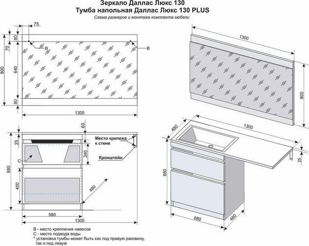 - Габариты корпуса тумбы (ШхВхГ): 680х880х480 мм.