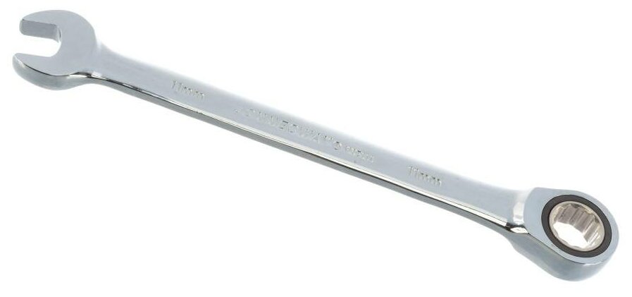 Ключ комбинированный трещоточный 11 мм JONNESWAY Гаечный комбинированный ключ представляет собой конструкцию, объединяющую рожковый профиль и накидной профиль с рабочей частью со встроенным храповым механизмом. Сочетание двух одноразмерных профилей компенсируют недостатки каждого в отдельности. Храповой механизм с колесом в 72 зуба обеспечивает высокий передаваемый крутящий момент благодаря применяемой хромованадиевой стали, закаленной особым способом. Малый, 5°, обратный ход делает ключ незаменимым в ограниченном рабочем пространстве. Ключ изготовлен по стандарту ANSI, имеет трехслойное хромоникелевое покрытие, зеркально отполирован. Применяется при обслуживании крепежа при свободном вращении. По желанию заказчика возможна поставка комбинированных трещоточных ключей серии "W45" размером до 50 мм.Характеристики:Тип: Без реверсаРазмер: 11 ммA : 165.9B : 22.6C : 6D : 8.3E : 22.4Масса: 68 гр