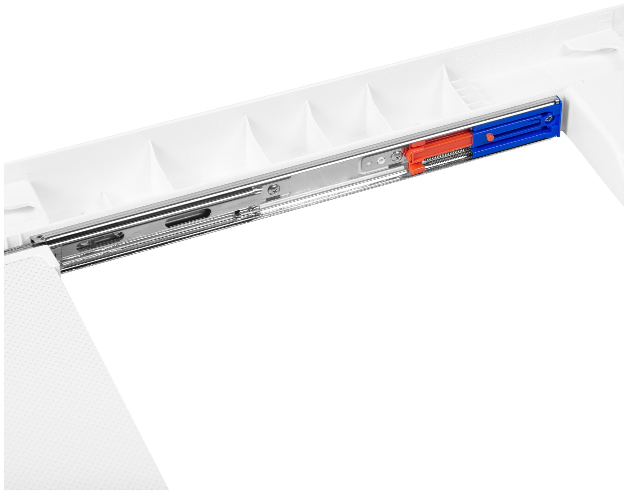 Благодаря выдвижной полке с автоматическими доводчиками больше не придется постоянно наклоняться к корзине с бельем или держать ее на весу при разгрузке сушильной машины, достаточно просто поставить корзину на полку.
