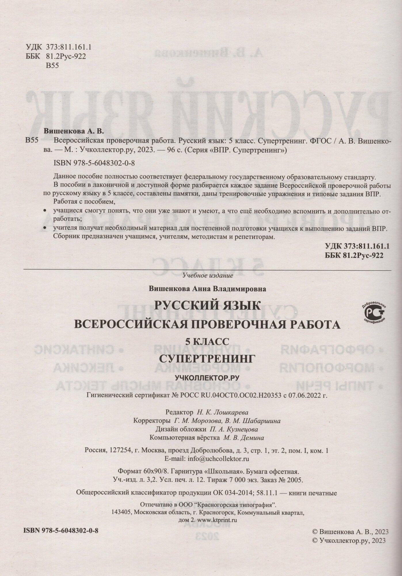 ВПР Русский язык. 5 класс. Супертренинг (Вишенкова Анна Владимировна); Учколлектор.ру, 2023