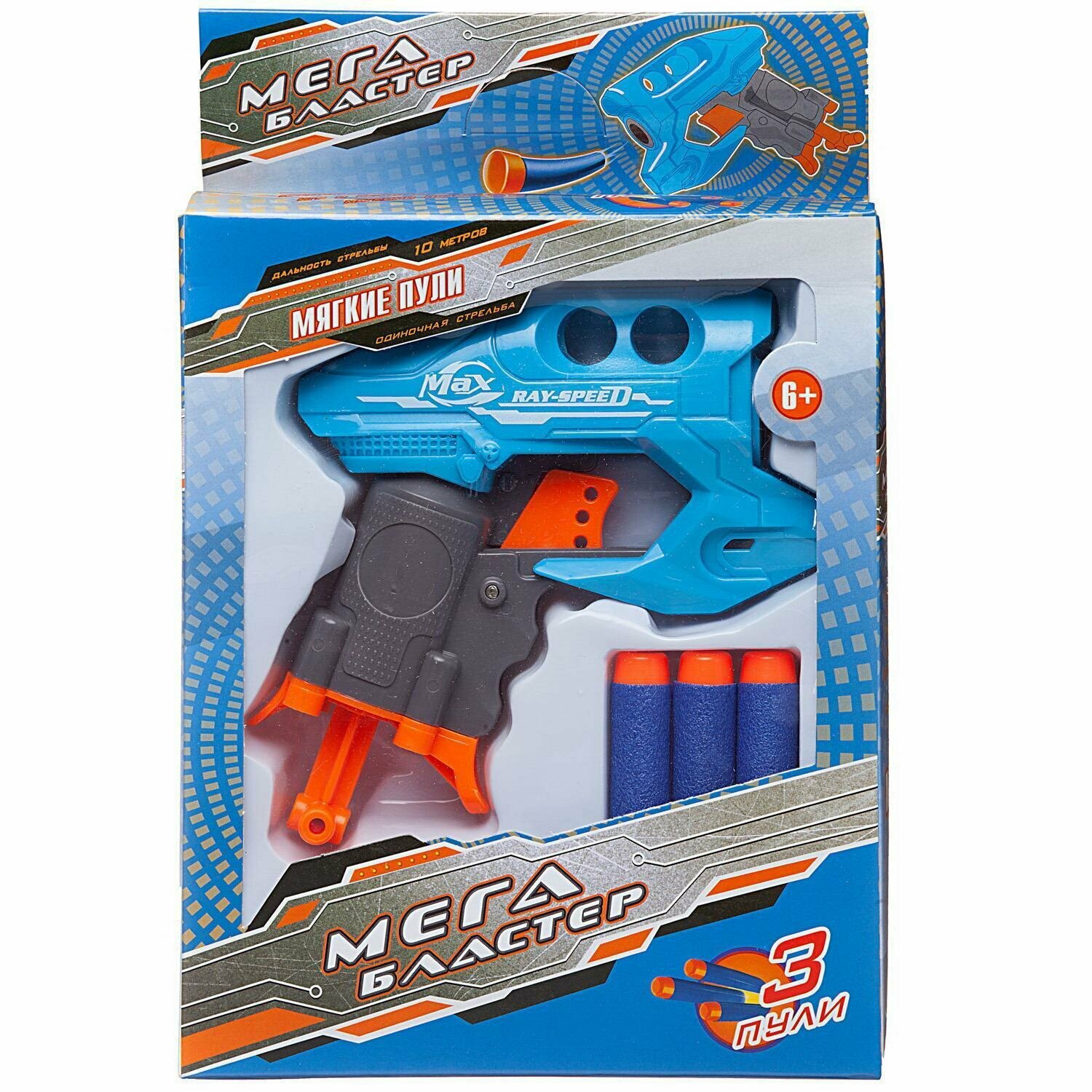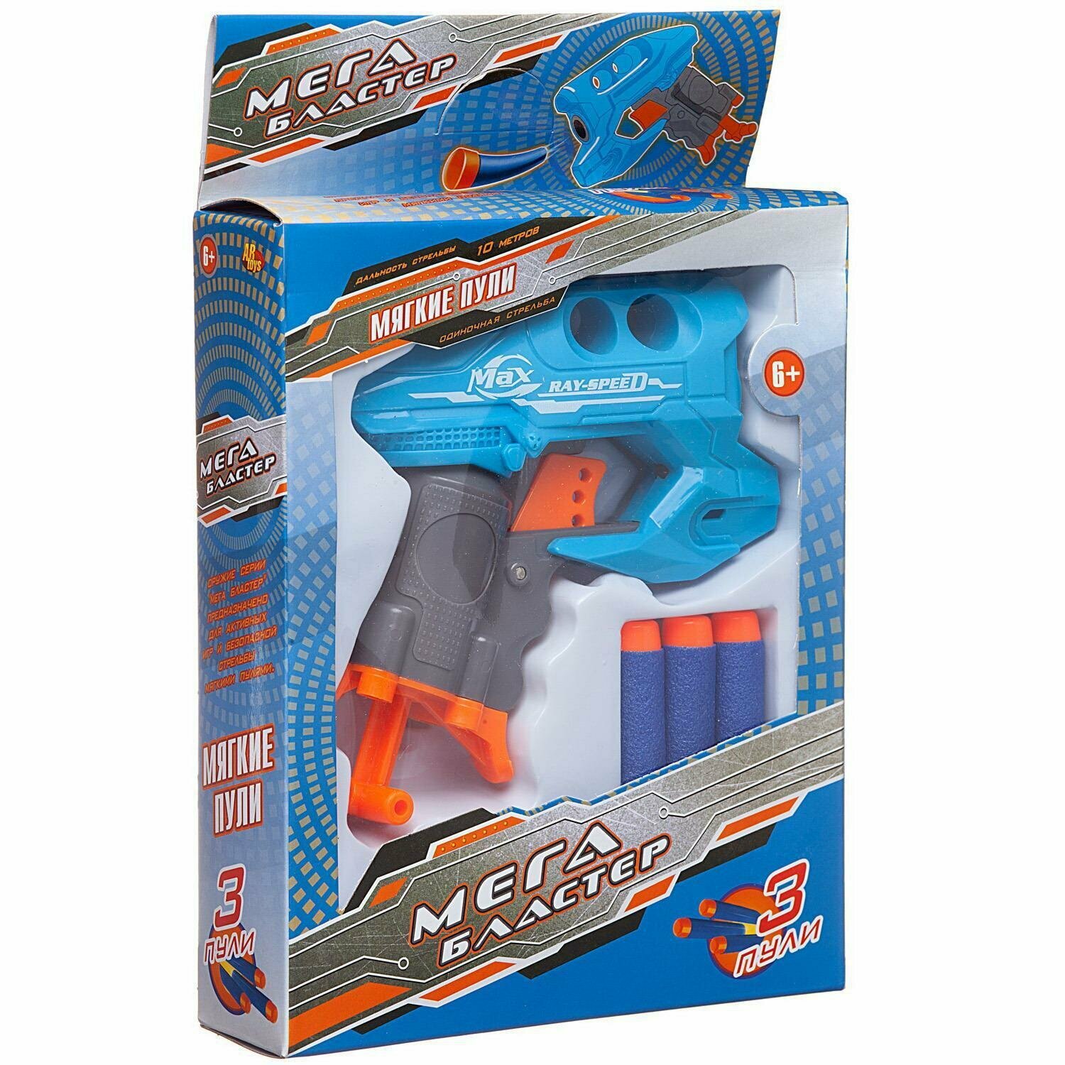 Бластер Мегабластер синий с 3 мягкими пулями ABtoys