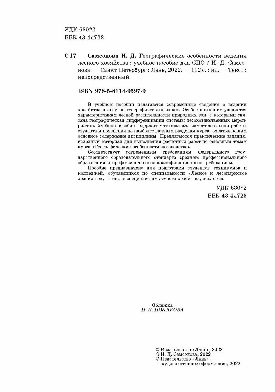 Географические особенности ведения лесного хозяйства. Учебное пособие для СПО (И. Д. Самсонова); Издательство ЛАНЬ, 2022