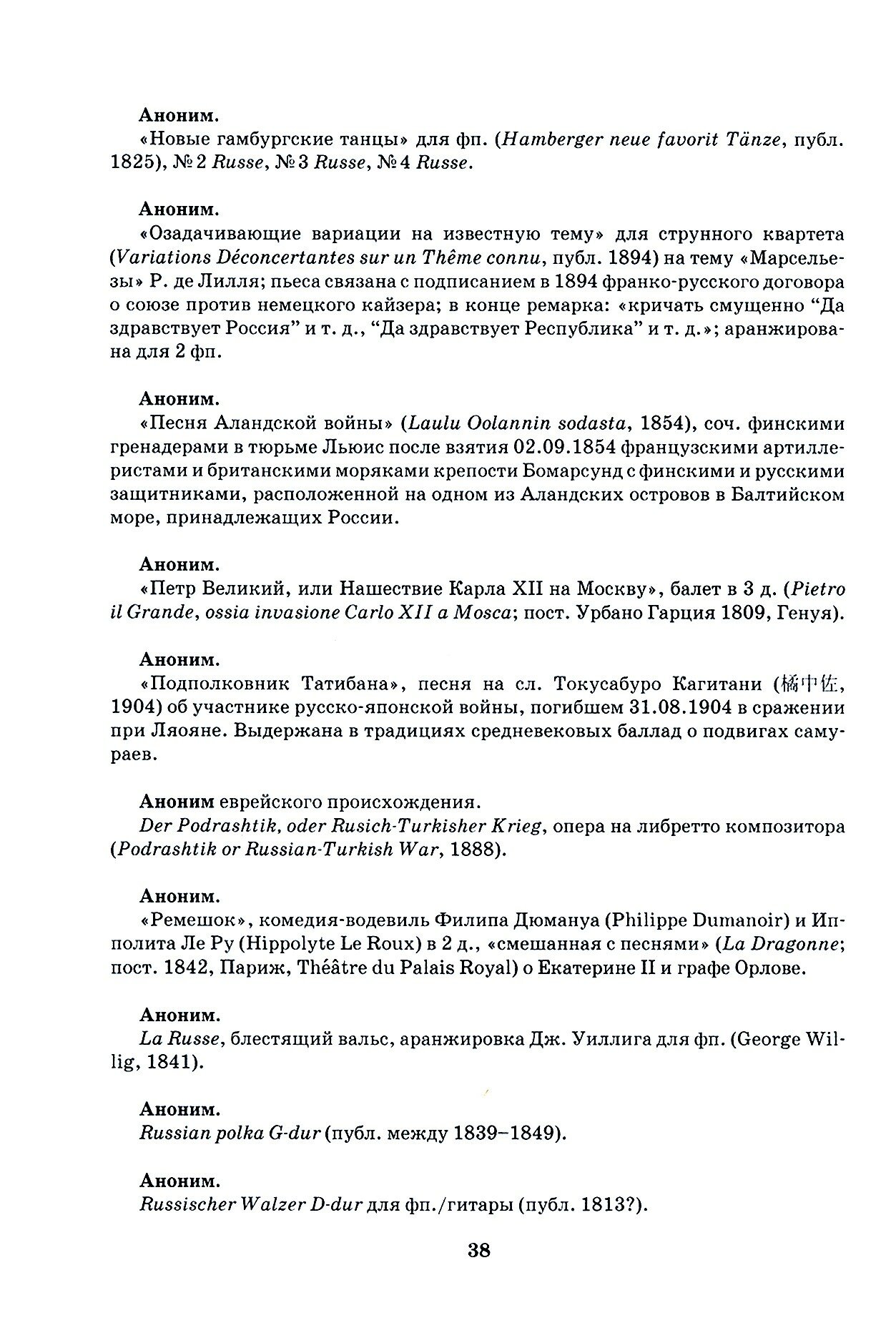 Научное справочное издание представляет собою первый опыт обобщения информации о зарубежной («нероссийской») музыке, посвященной России. Книга содержит словарные статьи о более чем 4 600 композиторов и их «русских» опусах. «Русская тема» как отображение русского начала в художественном произведении проявляет себя и в сугубо музыкальной специфике в виде цитирования, аранжировки и стилизации русского фольклора или произведений русских композиторов, использования русских народных инструментов. Она ставится и шире – как манифестация наиболее общих, коренных глубинных аспектов национальной идентичности, таких как культура (язык, литература и искусство, бытовые традиции), история (события и вехи становления Российского государства, крупные исторические персоналии), территориальное расположение и природная среда обитания, религиозные верования, особенности общественного бытия и психологии россиянина, складывающаяся в его сознании картина мира.