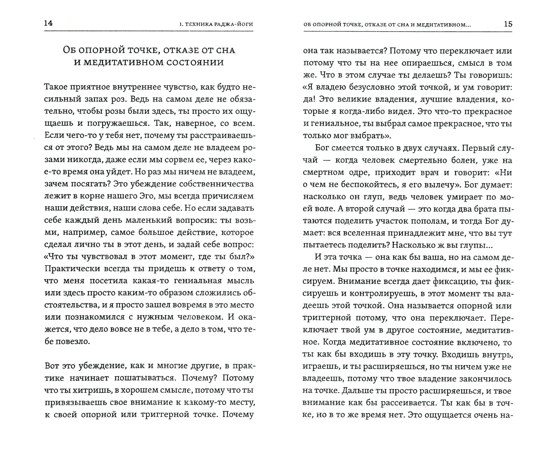 Книга посвящена исследованию того, что нам даютпрактики йоги, как они меняют судьбу, мировоззрение и внутреннее состояние каждого человека. Особое внимание уделяется йогическим техникам, которые не связаны с выполнением поз (асан). Практика йоги рассматривается через личный опыт автора как преподавателя раджа-йоги, приводятся примеры учеников и истории, собранные из различных духовных текстов.