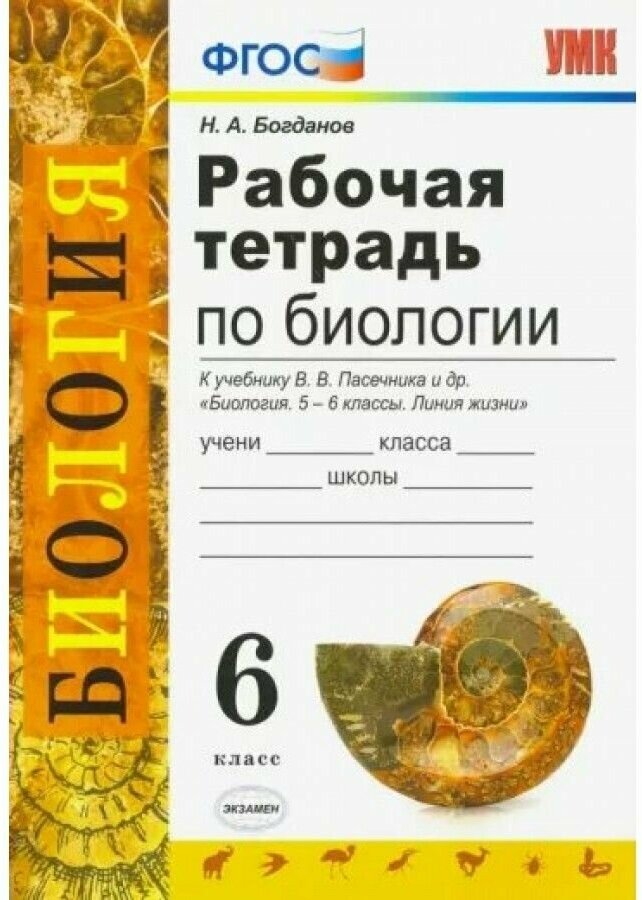 Рабочая тетрадь по биологии 6 класс К учебнику В В Пасечника и др Биология 5-6 классы Линия жизни (Богданов Николай Александрович); Экзамен, 2023