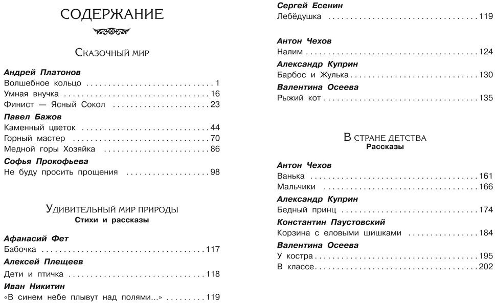 В хрестоматийный сборник вошли сказки, стихи и рассказы известных российских писателей, рекомендованные к прочтению в четвертом классе общеобразовательной начальной школы. Тексты произведений представлены без сокращений, напечатаны на хорошей бумаге крупным шрифтом и содержат цветные иллюстрации ведущих российских художников.