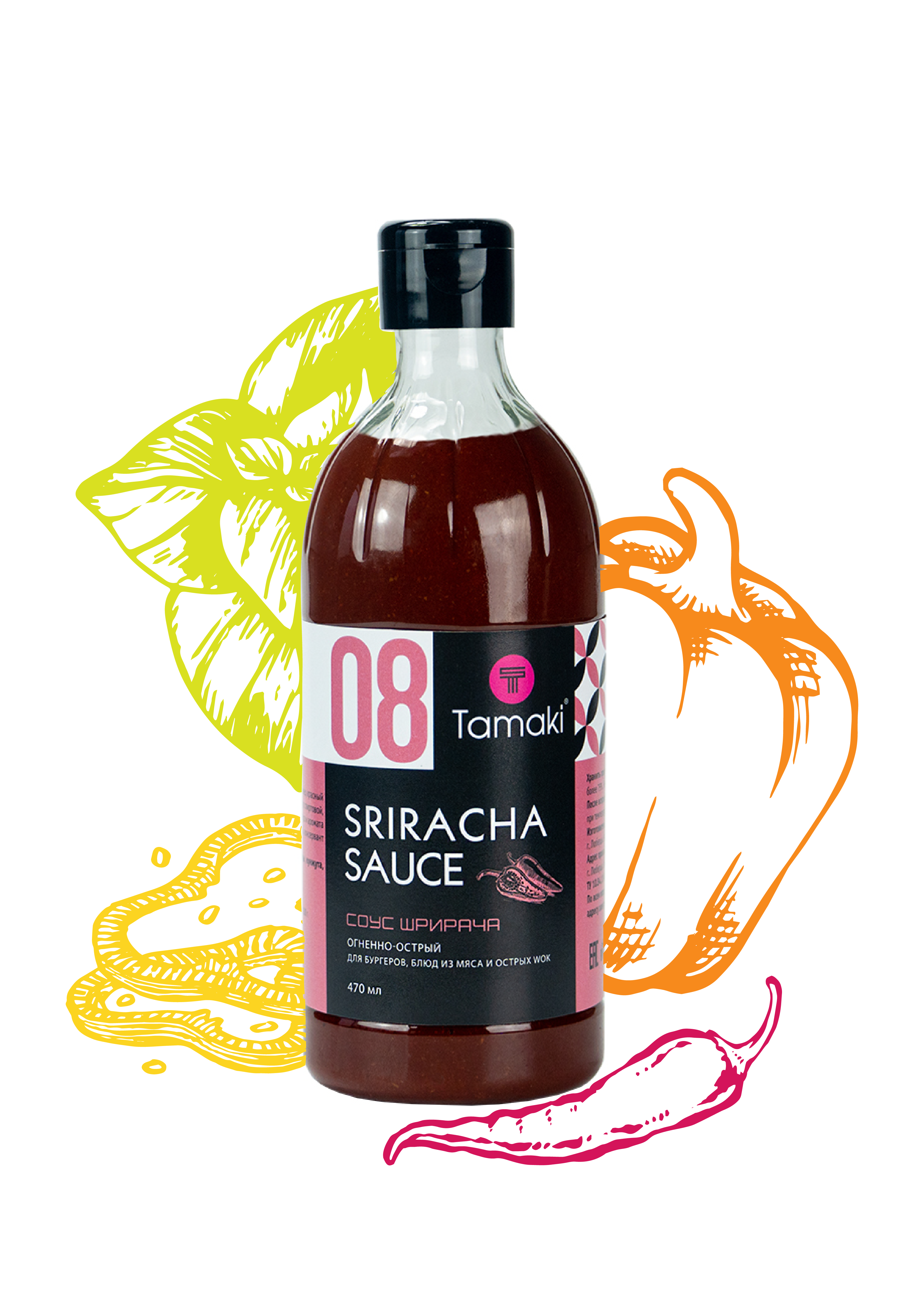 Шрирача - популярный ярко-красный соус с приятной жгучестью. Он изготавливается по традиционному тайскому рецепту из перца чили, который собирается раз в год, в конце летнего сезона. Именно в это время перец вызревает, а его вкус полностью раскрывается, набирает свою максимальную остроту. Соус Шрирача – универсальный. Его можно использовать при приготовлении вока, бургеров и пиццы. Часто его делают острым компонентном в других соусах, которые подают с роллами.