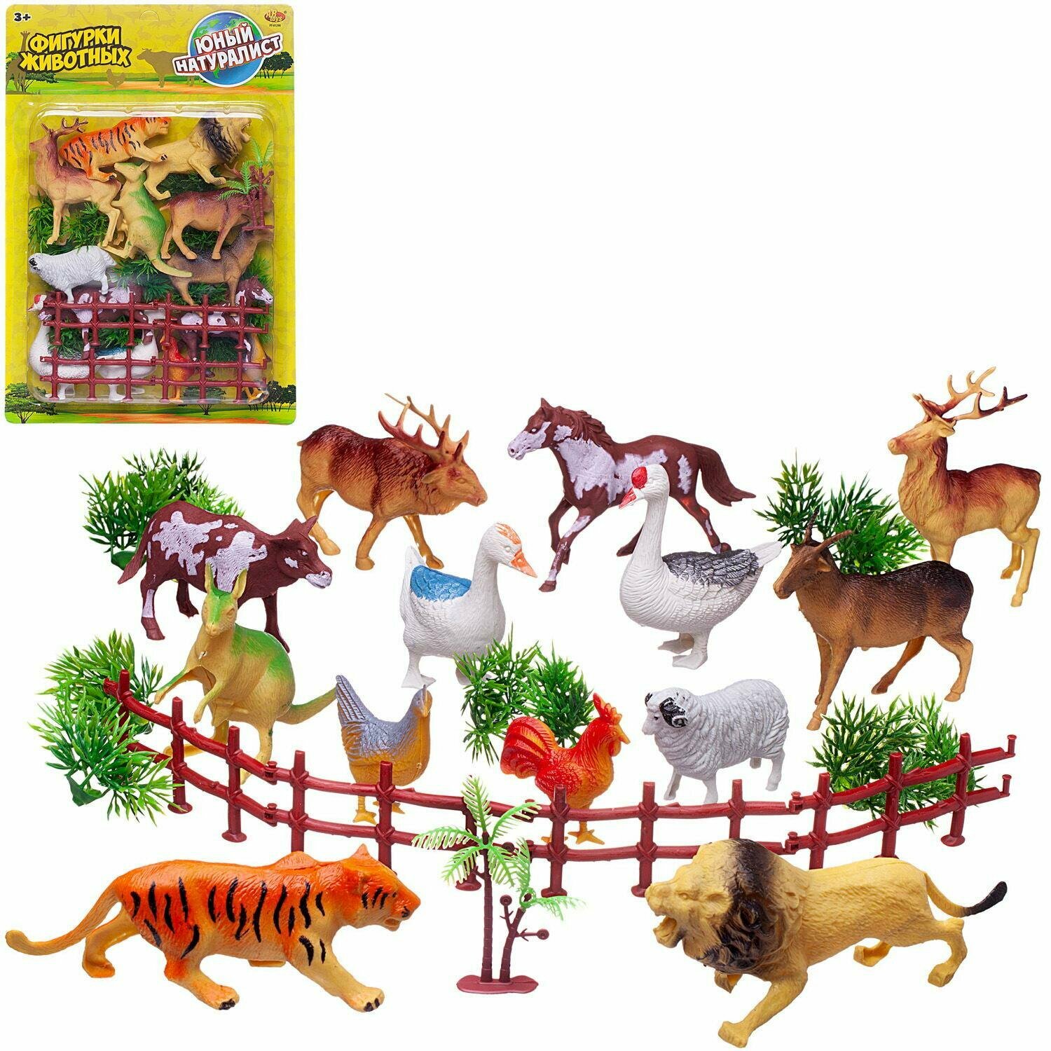 Комплектность: фигуры диких и домашних животных - 13 шт., растение - 6 шт., ограда - 4 шт.