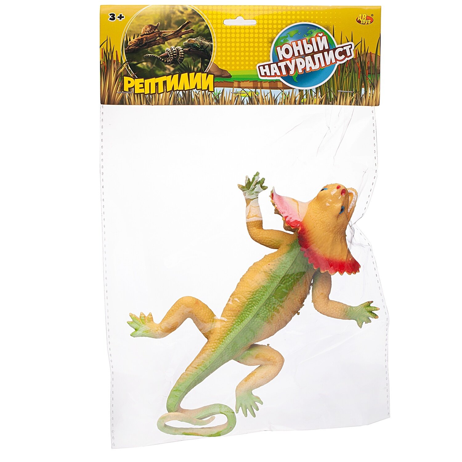 Модель: Юный натуралист: Рептилии, Ящерица ярко-зеленая с воротником, резиновая