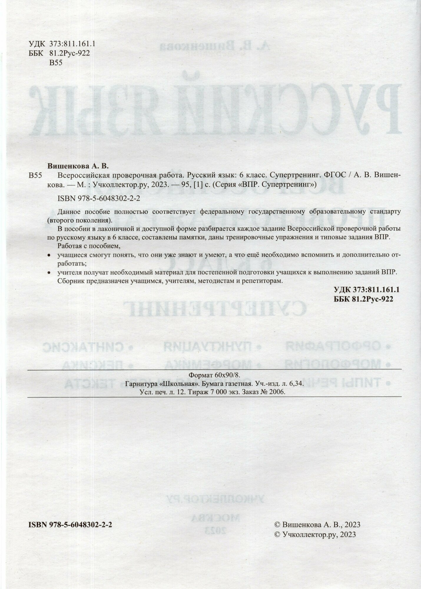 ВПР Русский язык. 6 класс. Супертренинг (Вишенкова Анна Владимировна); Учколлектор.ру, 2023