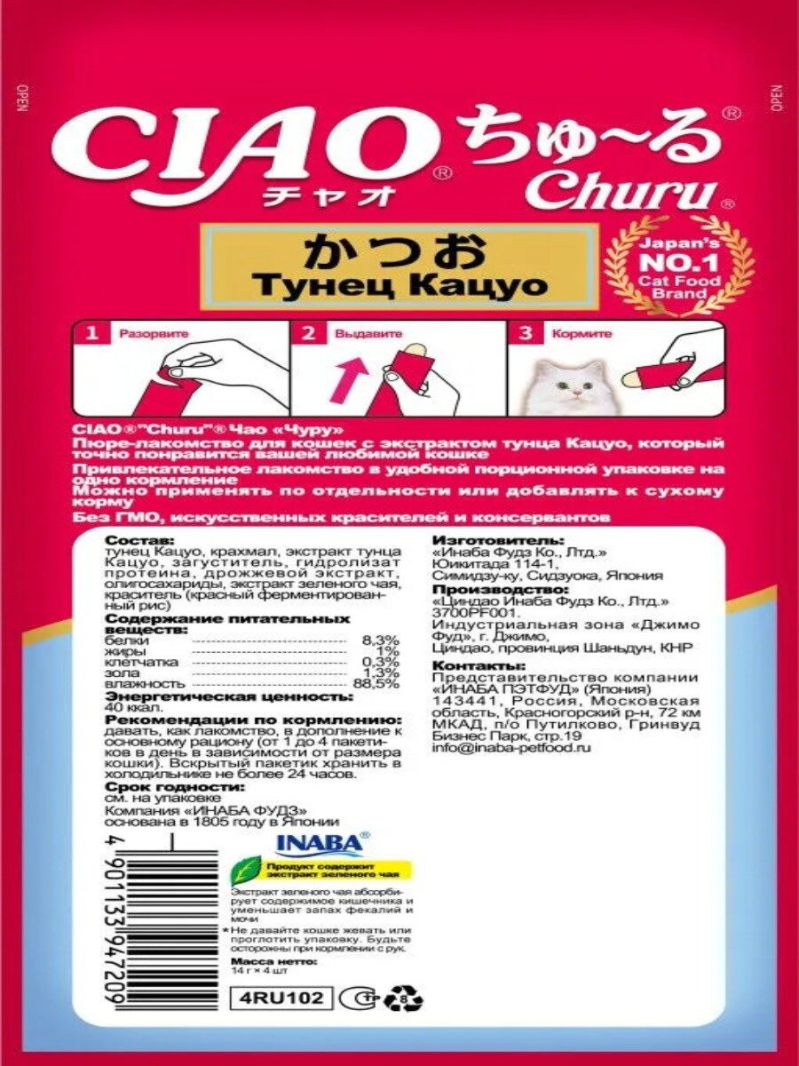 Лакомство-пюре для кошек Ciao Churu Тунец кацуо 14г*4шт