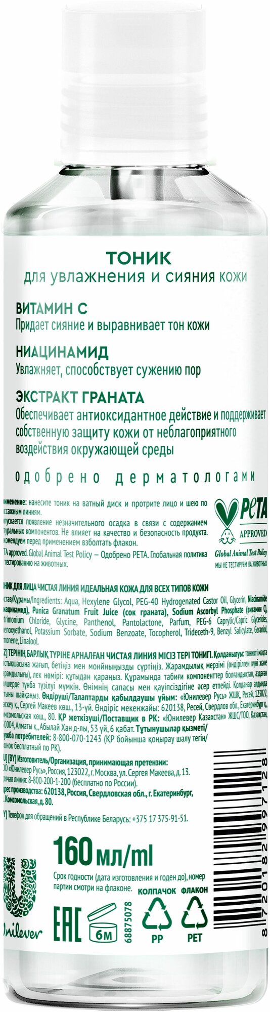 Тоник для лица Чистая Линия Идеальная кожа для всех типов кожи 160мл