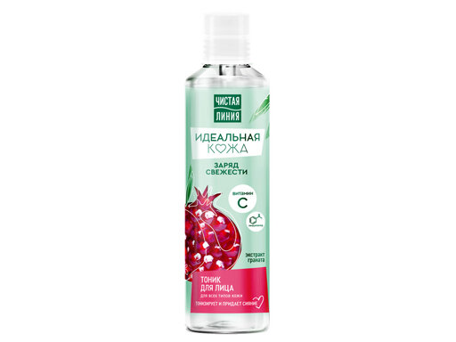 Чтобы получить чистую и ухоженную кожу, не забывай о полноценном очищении. После умывания воспользуйся тоником для лица Идеальная кожа Заряд свежести для всех типов кожи. Он удалит остатки загрязнений и макияжа, а также освежит и увлажнит кожу, подготовив ее к нанесению крема. Такой подход позволит забыть о несовершенствах кожи и тусклом цвете лица. Состав продукта содержит активные ингредиенты, соответствующие потребностям молодой кожи: Витамин С мощный природный антиоксидант, придает сияние и выравнивает тон кожи; Ниацинамид увлажняет, участвует в нормализации обменных процессов кожи, способствует сужению пор; Экстракт граната обеспечивает антиоксидантное действие и поддерживает собственную защиту кожи от неблагоприятного воздействия окружающей среды; Пантенол смягчает и восстанавливает кожу.
