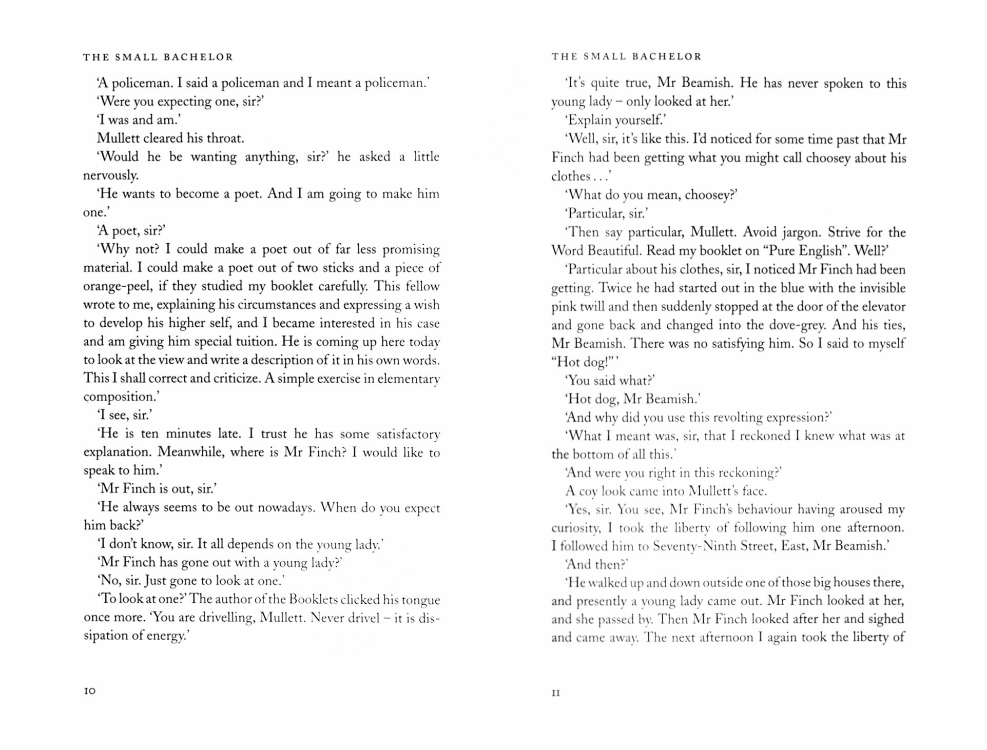 Would-be painter, George Finch, with lots of money and no talent, falls for lovely Molly Waddington who falls for him. Unfortunately, Molly’s snobbish stepmother, Mrs Sigsbee H. Waddington, New York society queen, has grander ideas for Molly, not least because George comes from Idaho, which is in every sense beyond the pale. Based on a 1917 musical comedy script by Wodehouse and his friend, Guy Bolton, The Small Bachelor tells the story of George’s struggle to win his girl, with the willing help of Hamilton Beamish, author of self-improvement pamphlets, and the unwitting assistance of a poetic policeman, Molly’s henpecked father, and New York’s premier female pickpocket.