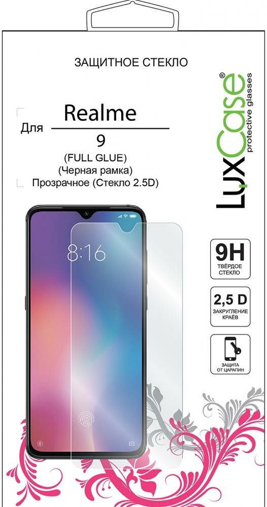 Стекло защитное 2.5D FG LuxCase для Realme 9 Прозрачное 033 мм Чёрная рамка (78599)