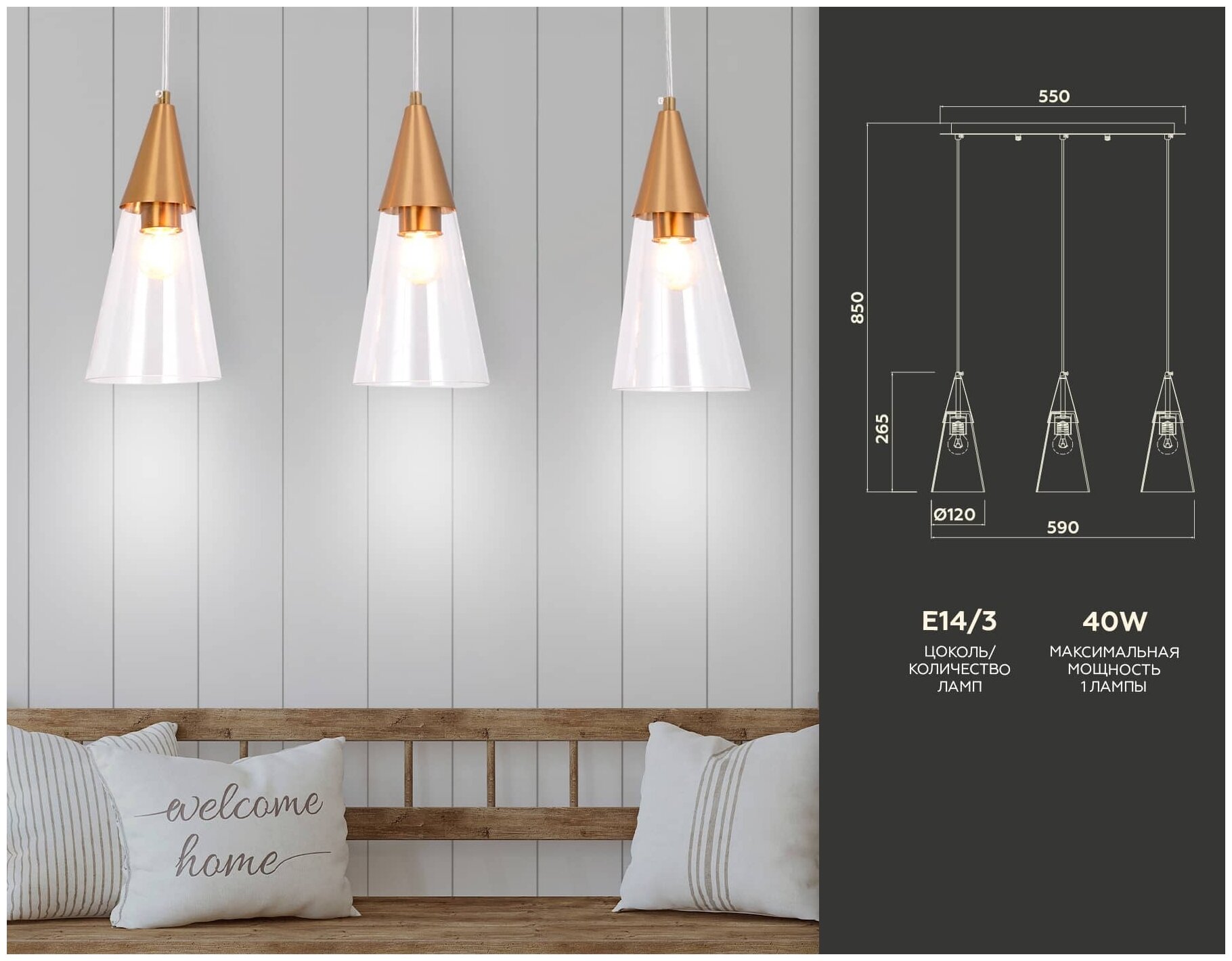 | Количество плафонов | 3 |