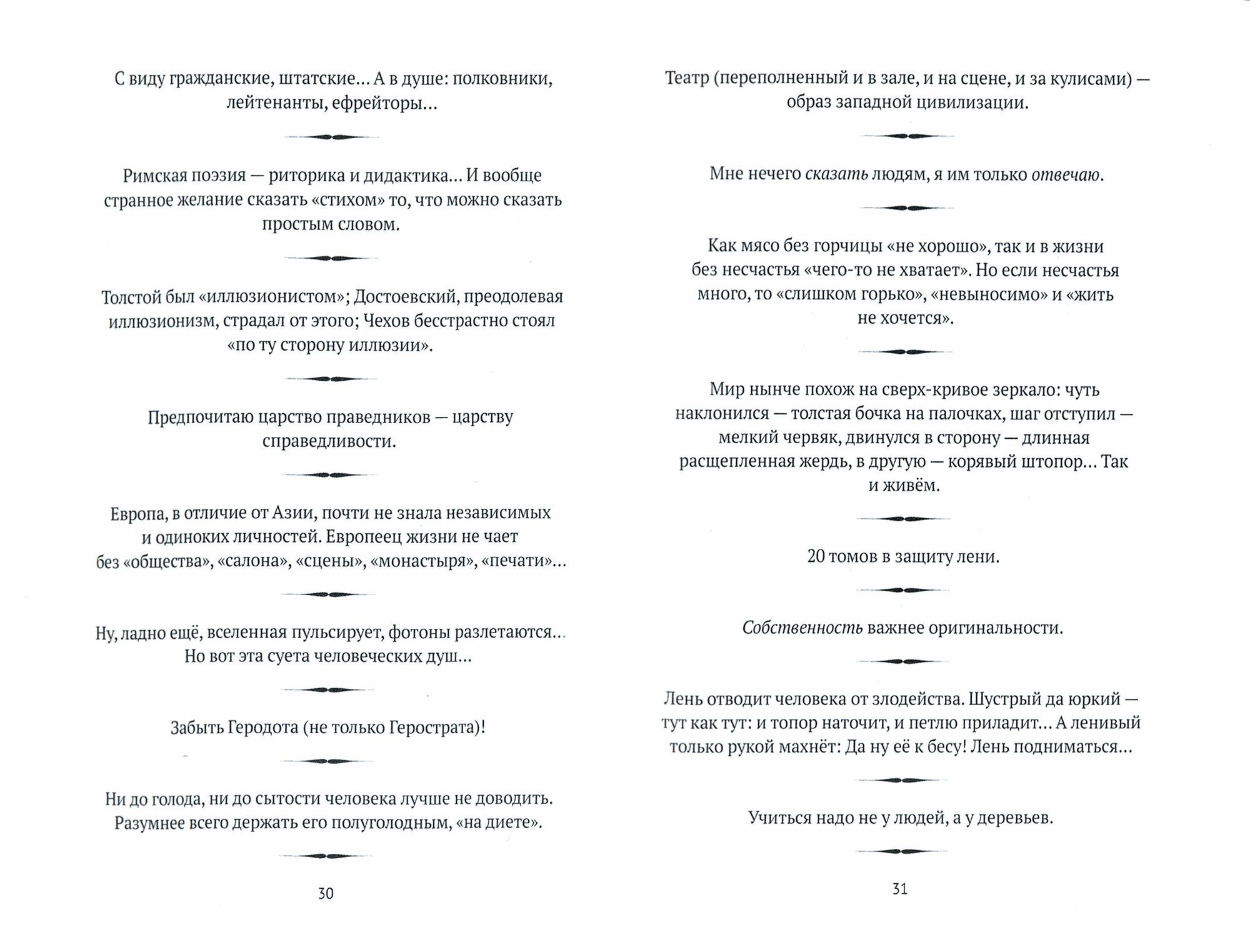 Недавно он сказал: «Многое утрачивает целесообразность. Удовольствие, вернее, jouissance снова стали доставлять „простые“ вещи. В них появилась давно забытая детская хищность…»