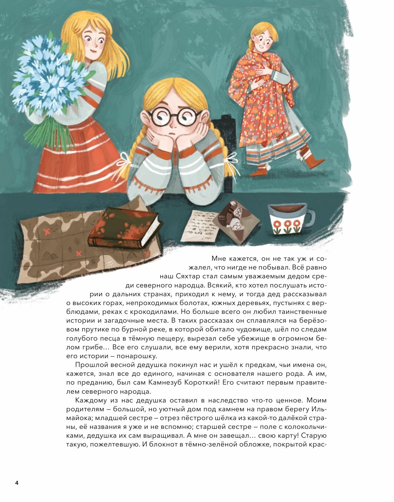 Девочка Варрэ из северного народца, что живет на берегу реки Ильмайок, получает в наследство от дедушки загадочный блокнот с чистыми листами и таинственным посвящением, а ещё старую карту. Сначала она, конечно, не рада такому подарку, ведь её сестры получили более ценные дары. Но в один дождливый вечер она изучает карту и вдруг понимает, что дедушка подарил ей самое ценное, что только мог - мечту, путешествие и жизнь, полную приключений.