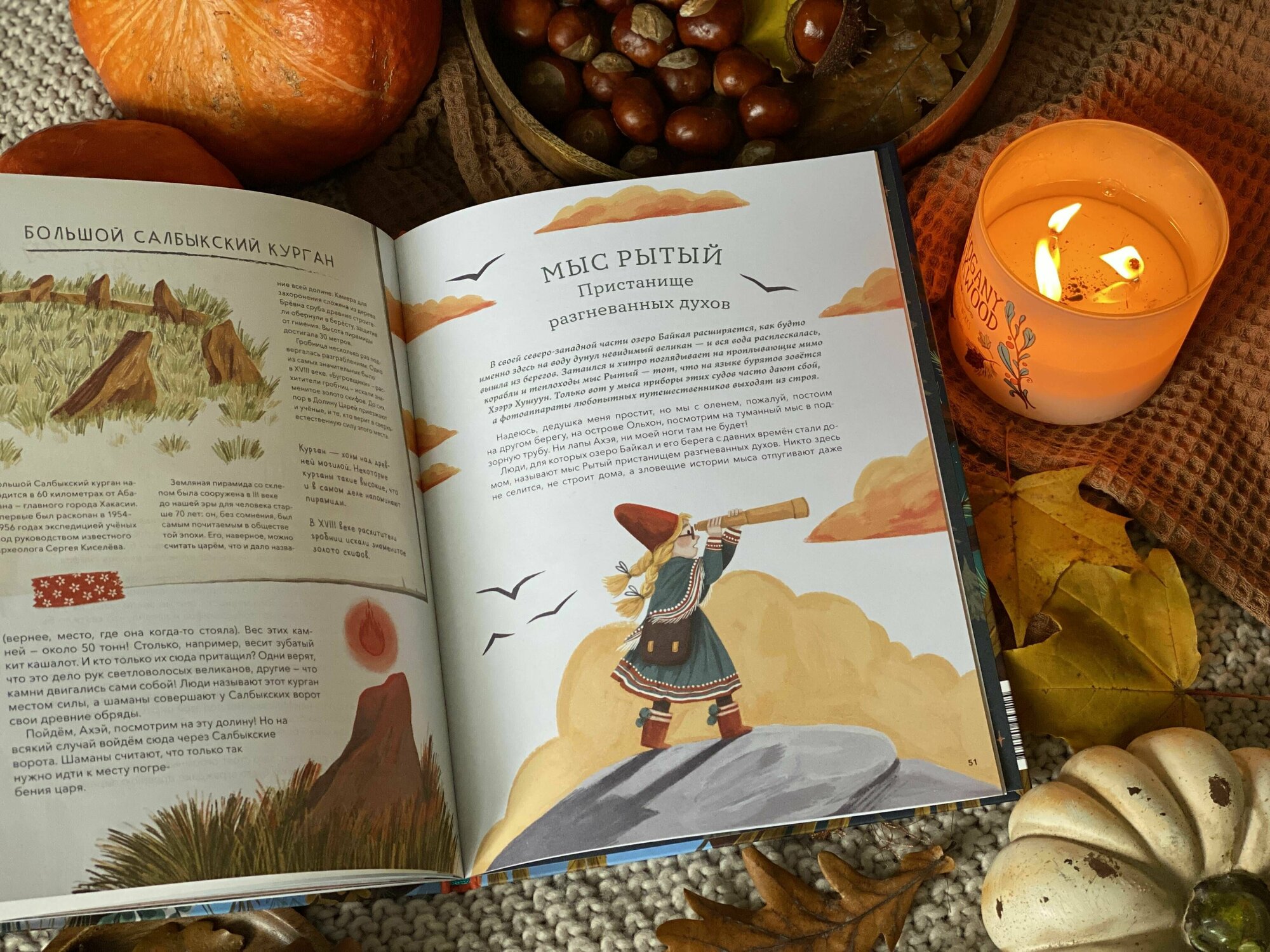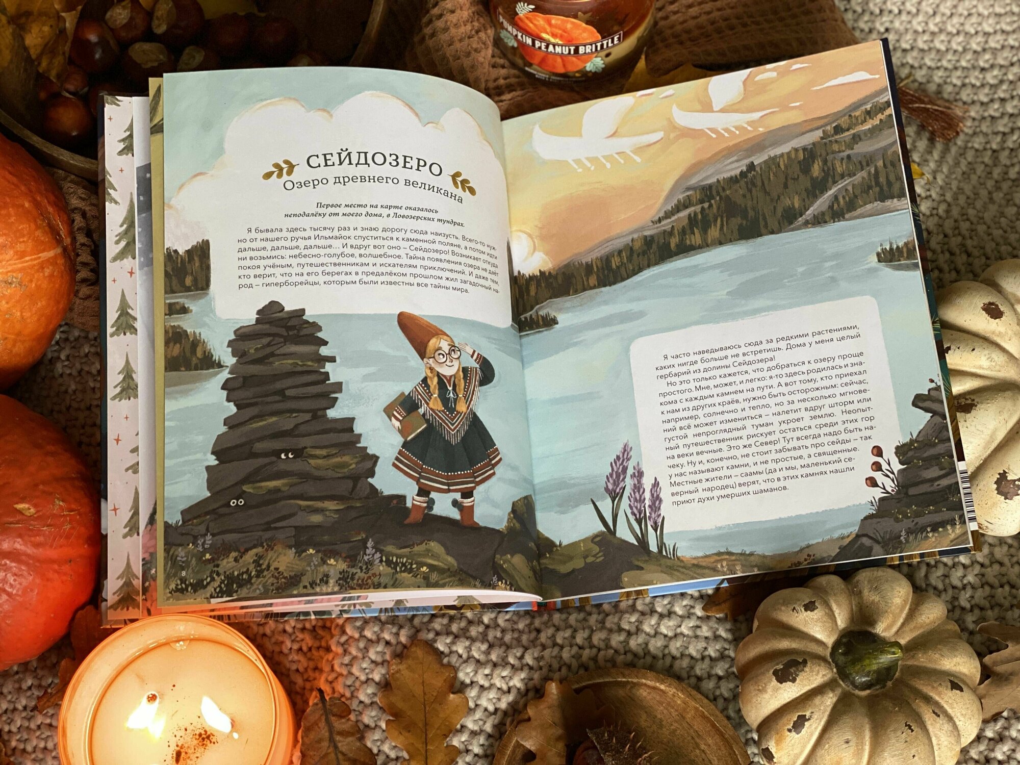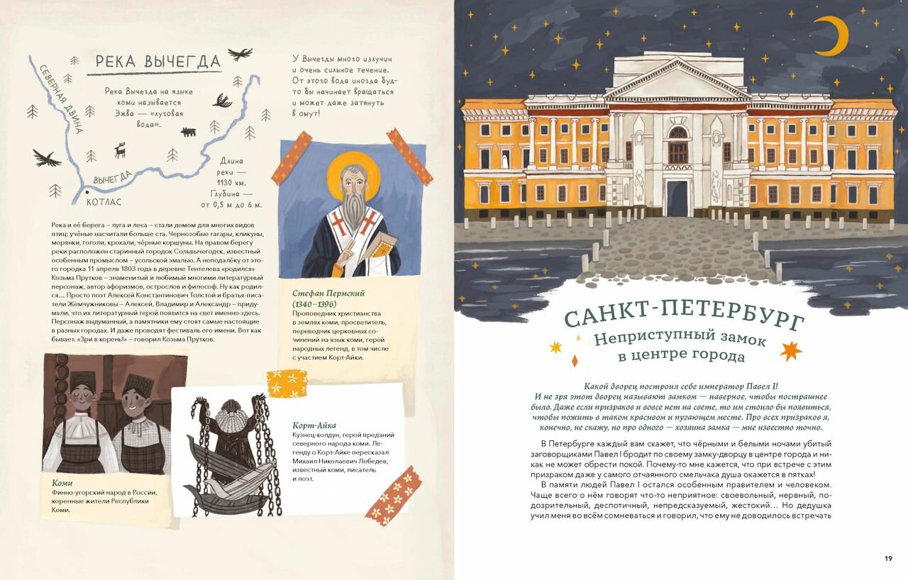Места на карте нашей родины подобраны совершенно разные: и всем известные, и не очень. О некоторых я узнала впервые (ребёнок тем более). Повествование построено очень интересно: через историю необычной полуволшебной девочки по имени Варрэ. Она путешествует со своим волшебным оленем по местам, отмеченным на старинной загадочной карте, которую ей оставил в наследство дедушка. Варрэ ведёт блокнот в своём путешествии и в нем-то и содержатся научные факты. Стоит ли описывать качество текста Анастасии Строкиной? Думаю, нет. И хотя мы знаем ее как автора прекрасных сказок и как блистательного переводчика, но у неё есть огромные шансы стать заметным писателем детского нетривиального нонфика.