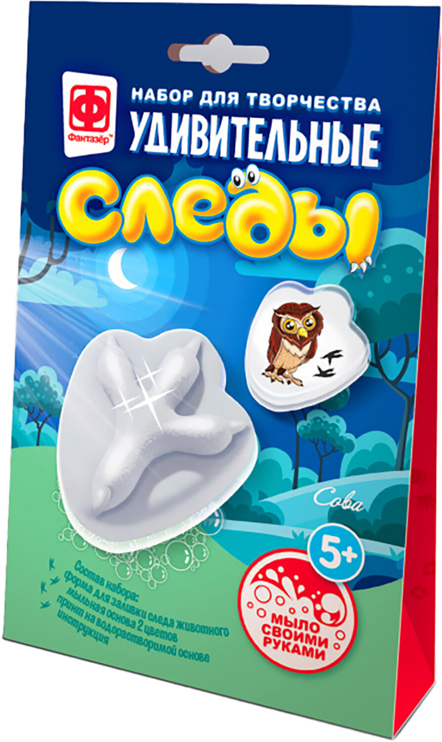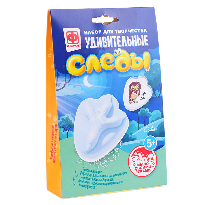 С набором Удивительные следы процесс изучения следов будет необычным, увлекательным, а главное чистым экспериментом, потому что следы животных мы будем делать из мыла, - в наборе для этого уже все есть. Мыло получается в форме 3D следа с одной стороны и картинкой животного, которому принадлежит след, с другой. Такое необычное мыло интересно подержать в руках, рассмотреть и легко запомнить, к тому же внутри вы найдете интересные факты о животных!