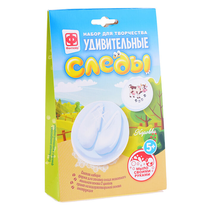 С набором Удивительные следы процесс изучения следов будет необычным, увлекательным, а главное чистым экспериментом, потому что следы животных мы будем делать из мыла, - в наборе для этого уже все есть. Мыло получается в форме 3D следа с одной стороны и картинкой животного, которому принадлежит след, с другой. Такое необычное мыло интересно подержать в руках, рассмотреть и легко запомнить, к тому же внутри вы найдете интересные факты о животных!