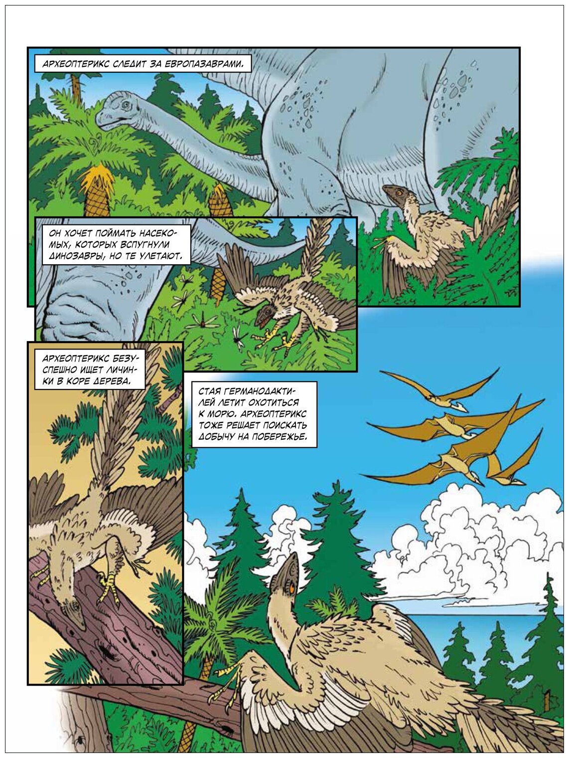 Книга посвящена хищным динозаврам и другим доисторическим животным, которые жили и охотились на земле, в воде и в воздухе. Комиксы, основанные на новейших палеонтологических открытиях, перенесут читателя на миллионы лет назад и познакомят с полной опасностей жизнью доисторических хищников. Комиксы дополняют познавательная информация о всех встречающихся в книге ископаемых животных и галерея, в которой можно сравнить их размеры.