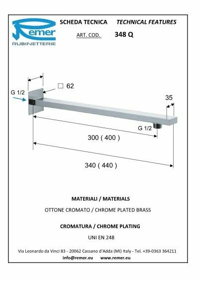 Кронштейн для верхнего душа Remer 348Q40 Хром