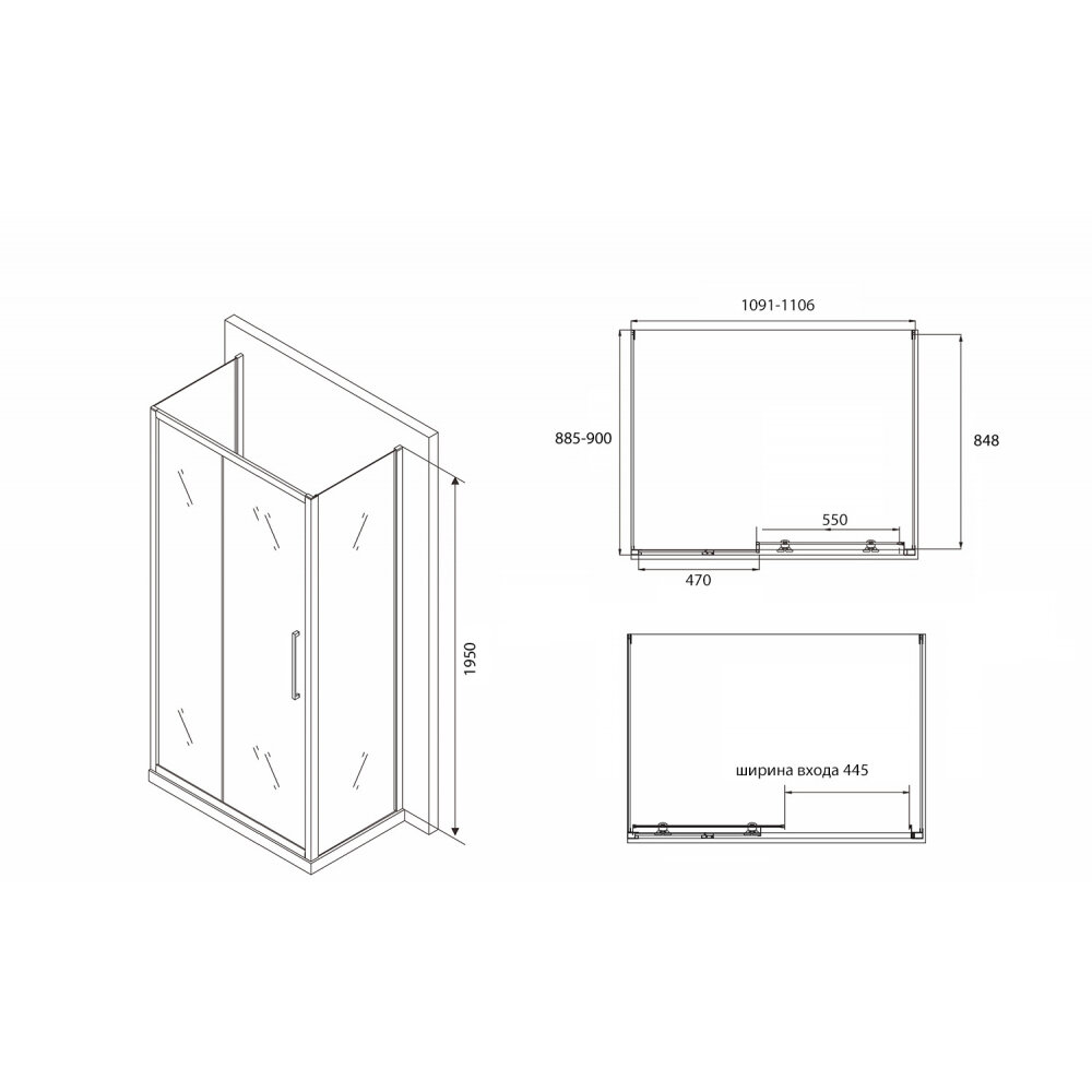 Модель: Schwarzer Diamant 110х90 AG30110BH-S90B-S90B профиль Черный стекло прозрачное