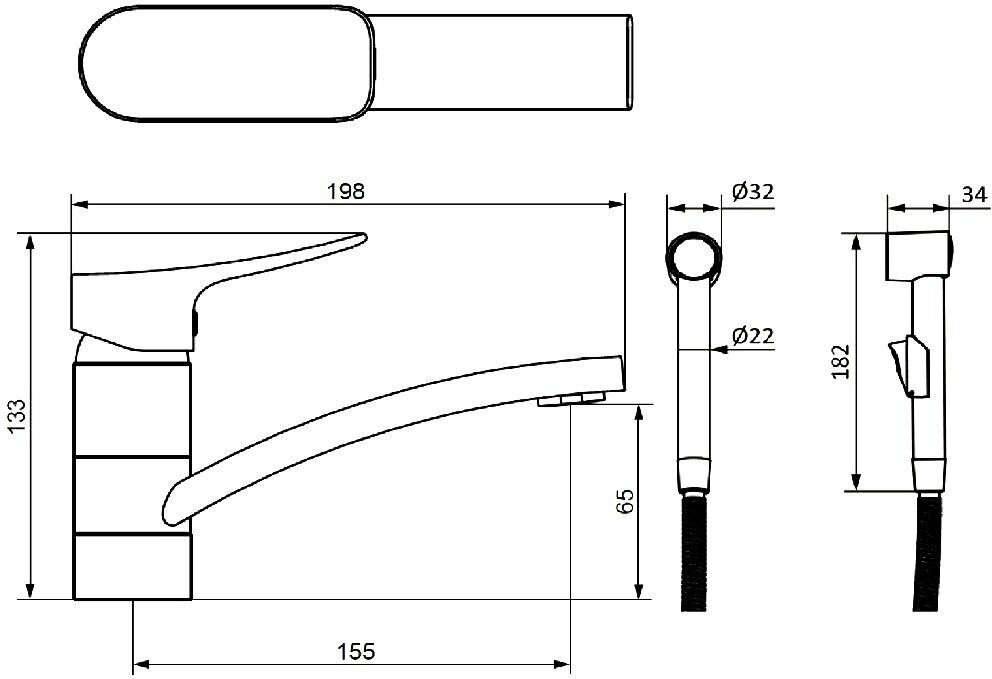 | Оснащение | аэратор, гибкая подводка, крепления, душевой шланг, лейка гигиенического душа, настенный держатель |