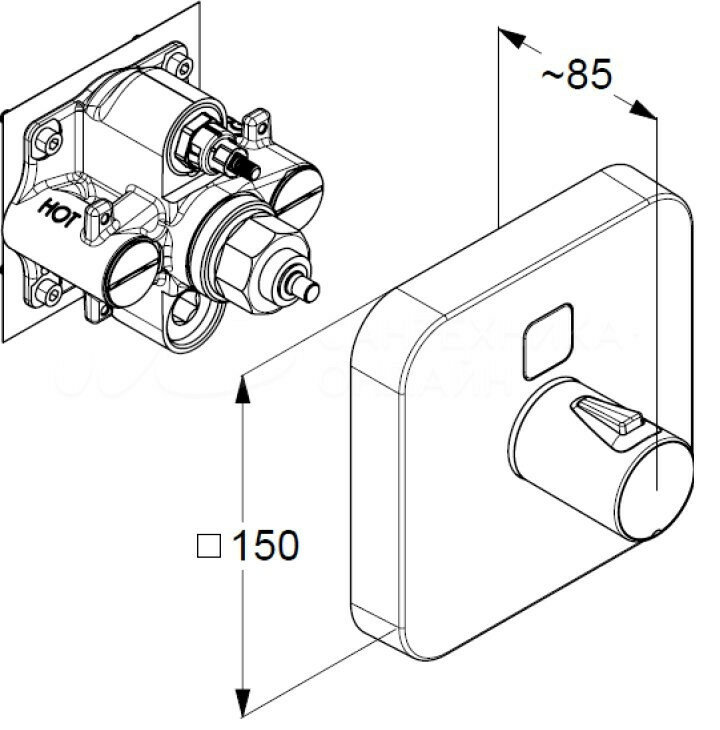 | Элементы системы скрытого монтажа | наружная часть смесителя |
