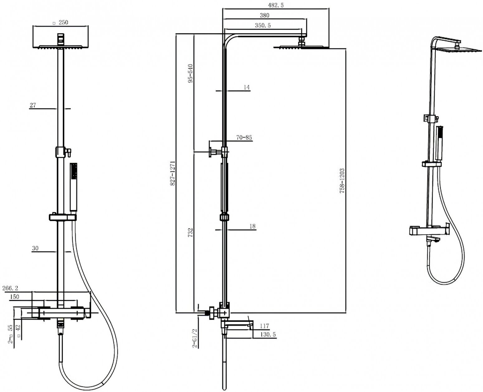 | Размер верхнего душа, мм | 250 |