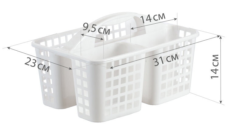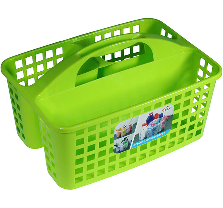 Органайзер-переноска — удобная и функциональная емкость для переноски моющих средств. Сделает уборку в доме комфортной. Лоток имеет четыре емкости с крупной перфорацией одинакового объема и ручку анатомически продуманной формы. Вес изделия составляет всего 300 г.