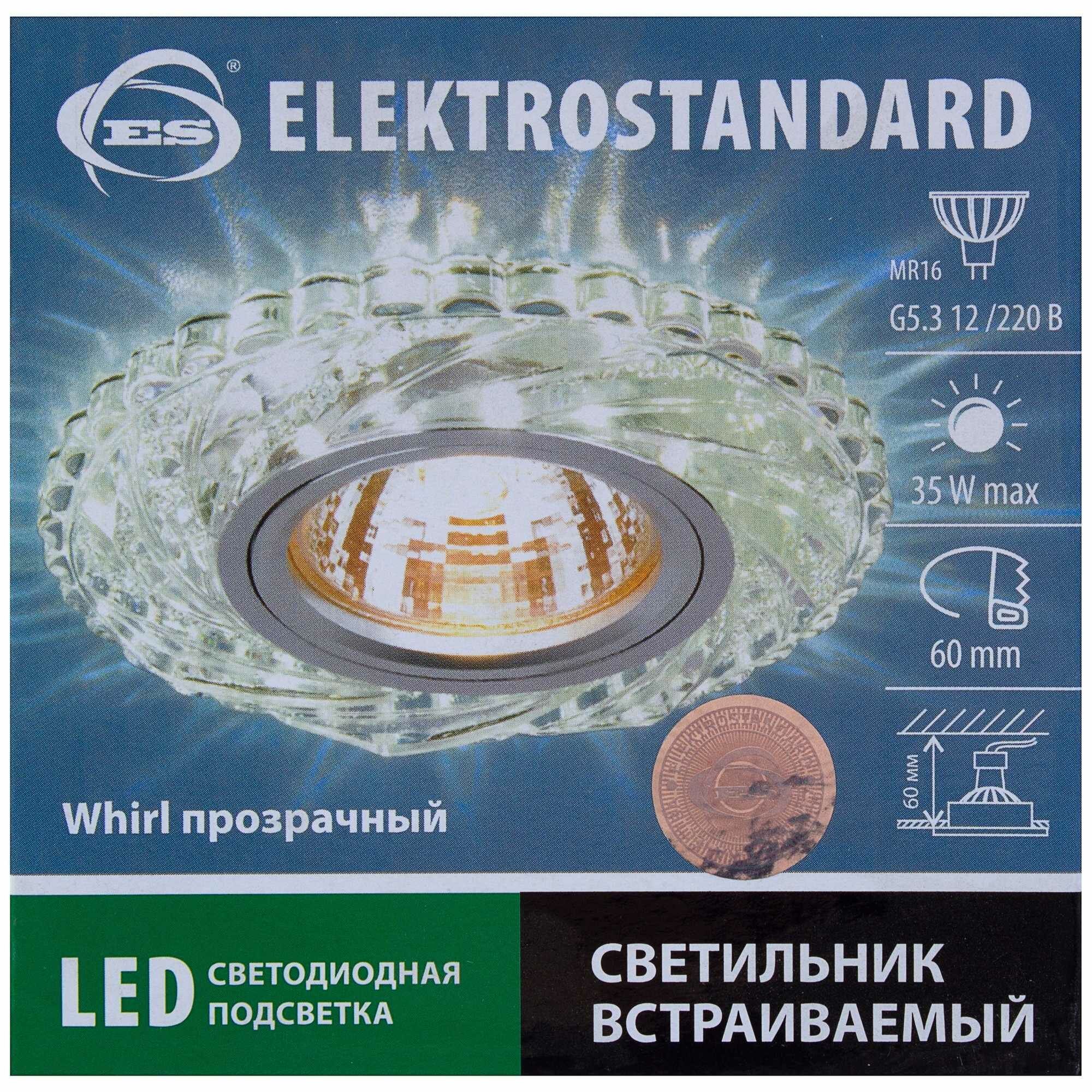 Спот точечный встраиваемый Elektrostandard "Whirl" с LED-подсветкой под отверстие 60 мм 1 м² цвет прозрачный