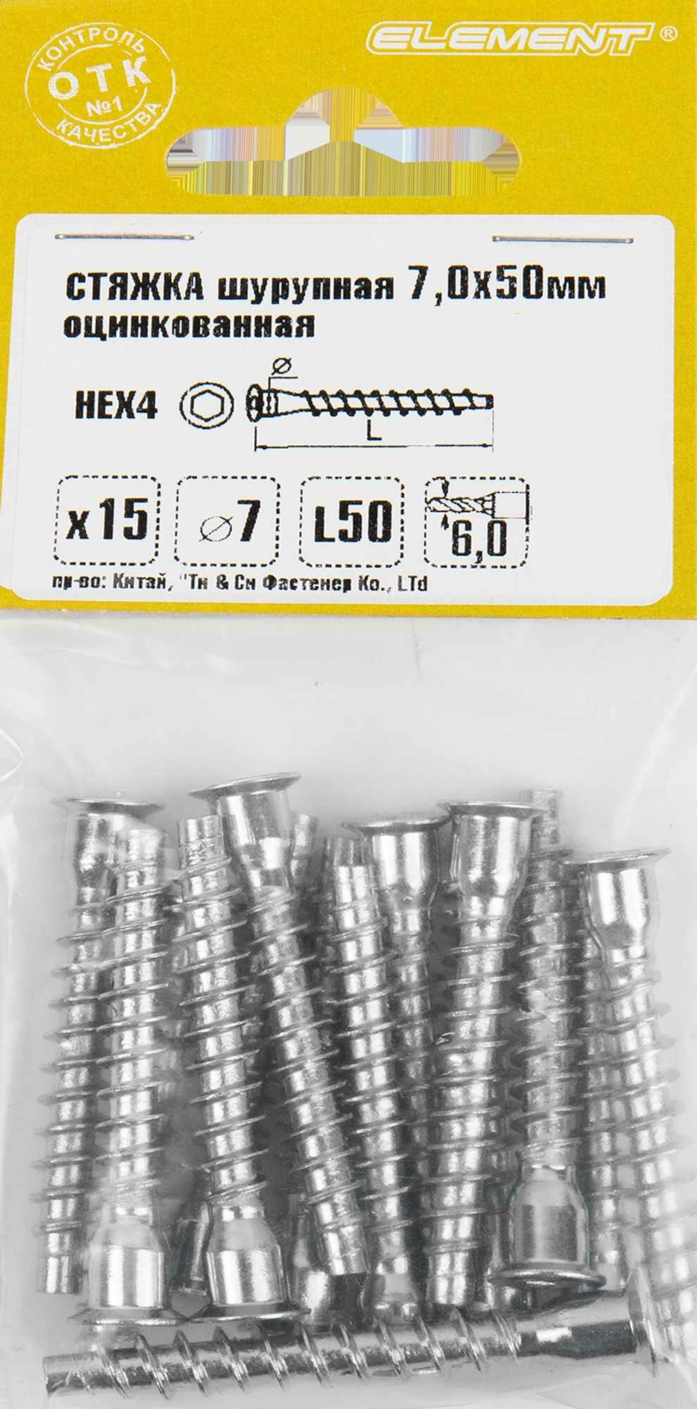 Стяжка мебельная шурупная HEX 7х50 мм цвет хром 15 шт. Леруа Мерлен