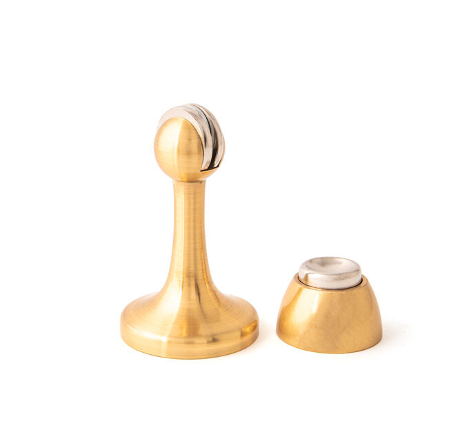 Магнитный стопор Apecs предназначен для ограничения открывания входной или межкомнатной двери. Стопор изготовлен из недорогого сплава ЦАМ с антикоррозионным гальваническим покрытием золотого цвета, которое отлично впишется в современный интерьер. Стопор состоит из двух элементов, которые соединяются магнитом при касании, чтобы открытая дверь не билась об стену и не закрывалась.