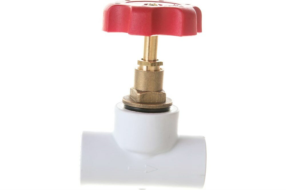 Вентиль белый Политэк PPR d=25 мм используется для регулирования проходящего потока жидкости в трубах PPR для горячего и холодного водоснабжения.